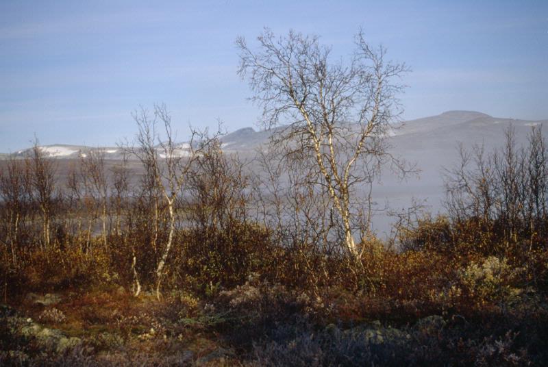 höst, snö, dimma, fjällvärld, fjällnatur, fjäll, fjällbjörk, björk