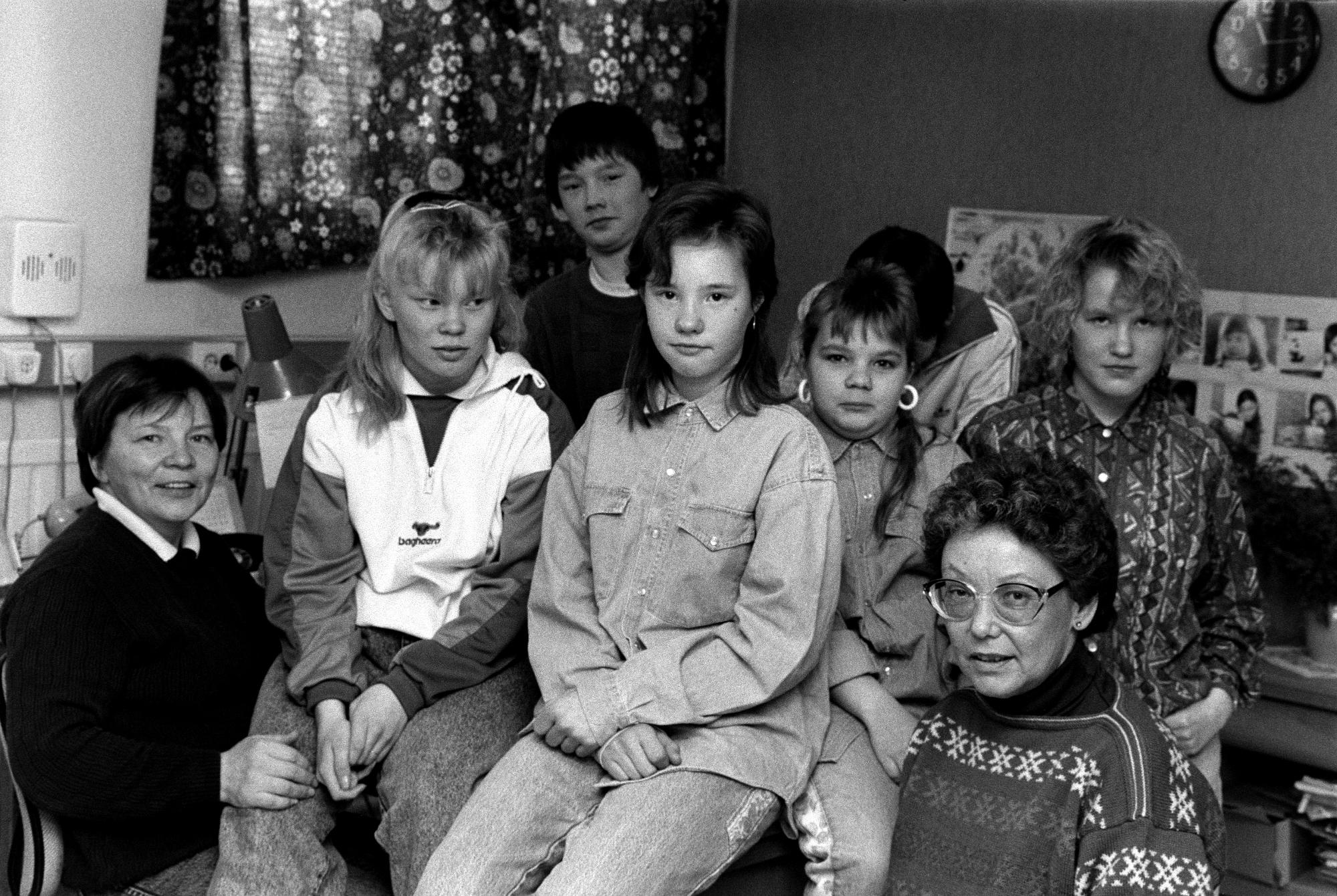 Ett gruppfoto med barn och kvinnor. De har samlats vid Riksorganisationen Same Ätnam, RSÄ.