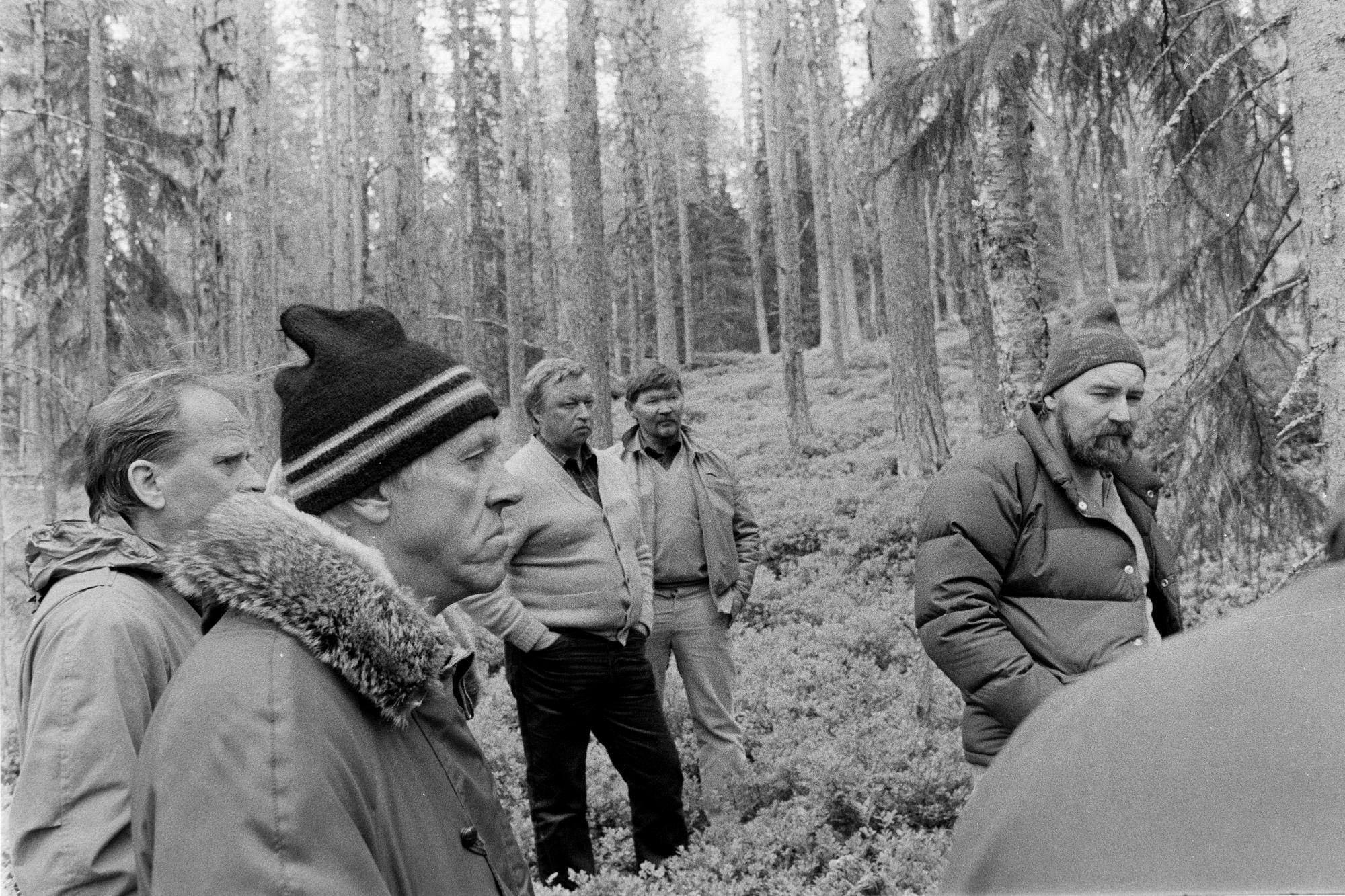 Exkursion på skogsdag i Vallbo. Deltagarna befinner sig i en kontinuitetsskog, skog som aldrig har kalavverkats