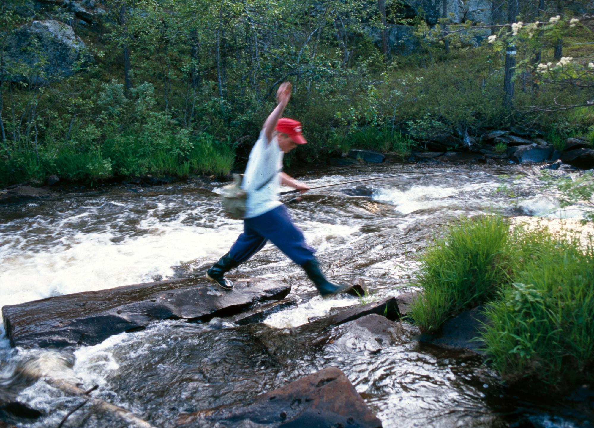 SenftenT:39:00326D :: balansera, fiske, man, skogsbäck