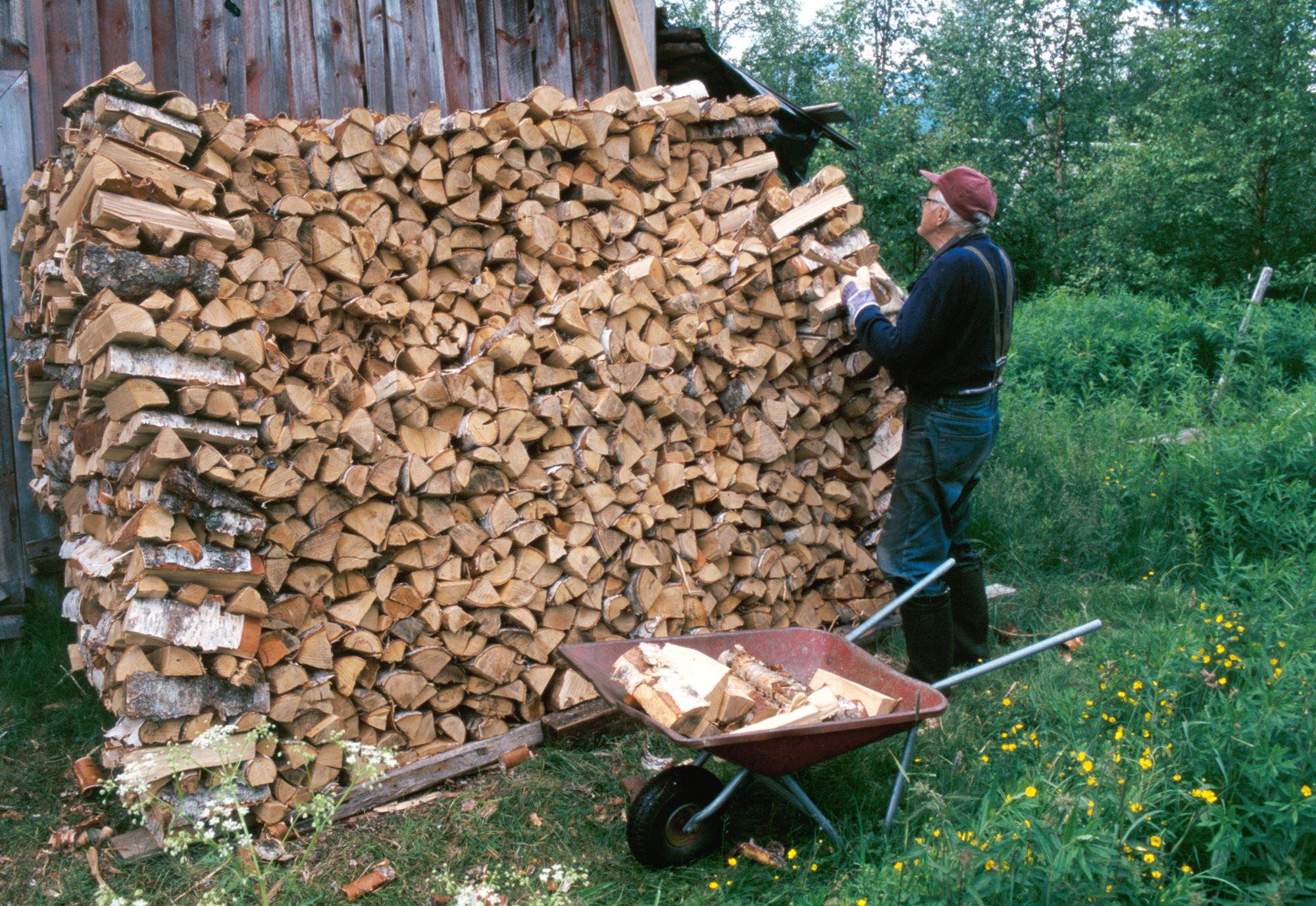 SenftenT:39:00409D :: staplar, man, björkved, torkning, vedarbete