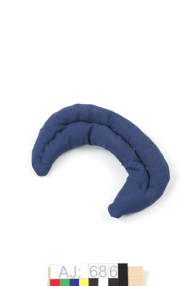 3: Halvmåneformad valk med fyllning. Handsöm längs mitten igenom fyllningen. Gu/l 16,5 cm Gå/B 9 cm