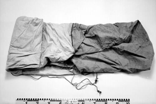 Tält av oblekt bomullsväv med golv av grågrön bomullsväv. Tältet är av åstyp med sluttande tak, låga väggar och gavlar. I ena gaveln dörröppning med metallöljetter längs kanterna för stängning. I andra gaveln ventilationsöppning med gles väv. Tältet har regelbundet utplacerade öljetter för tältlinor vid takkanterna och golvsidorna. Vissa av dessa fästen är förstärkta med läderbitar.
