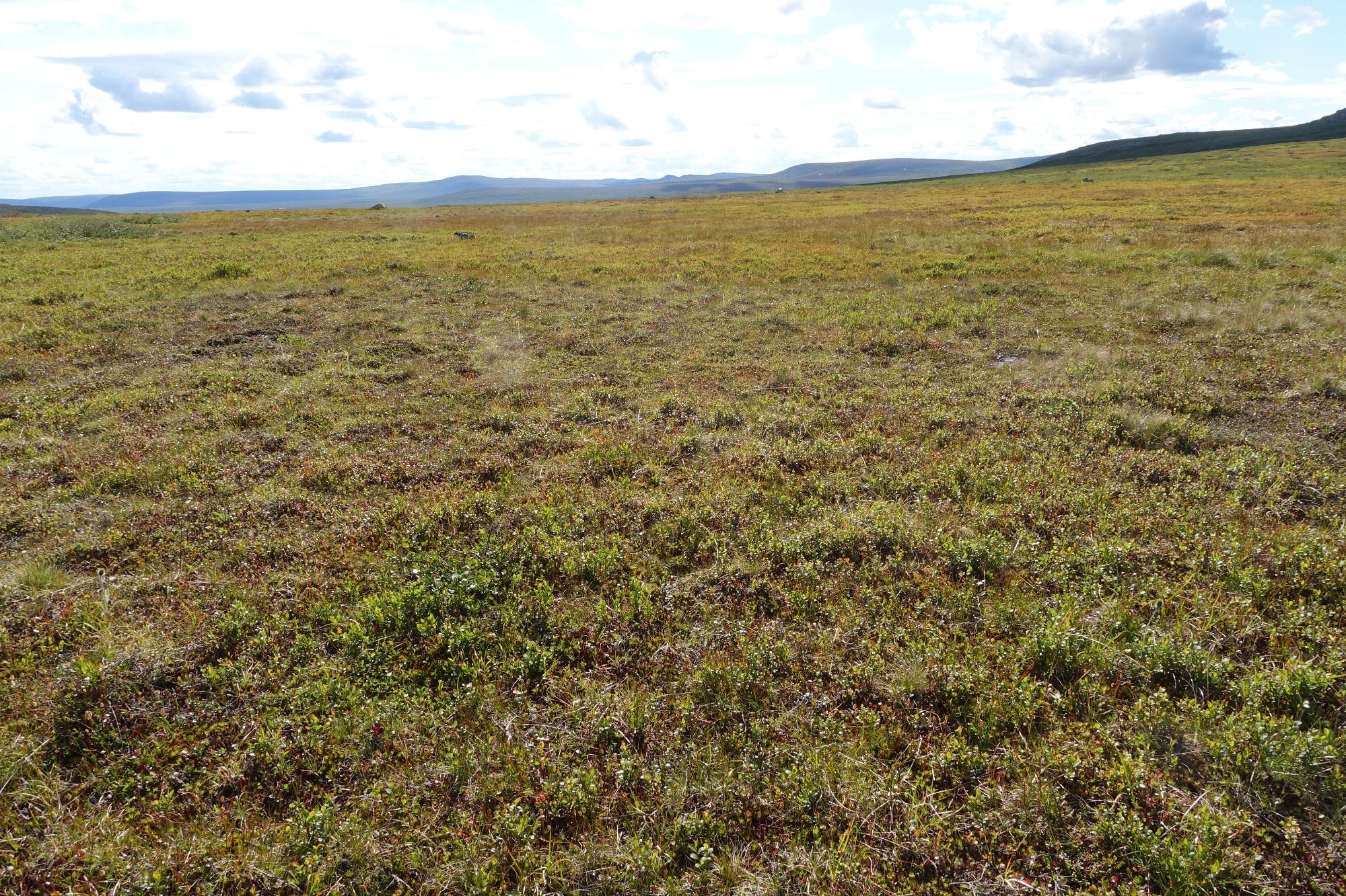 Vall vid Nuortvállegruppens flyttled mellan Bárggá och Buollemoajvve. Bilden tagen mot sydväst med Árvásfjällen (Árvesduottar) i bakgrunden.