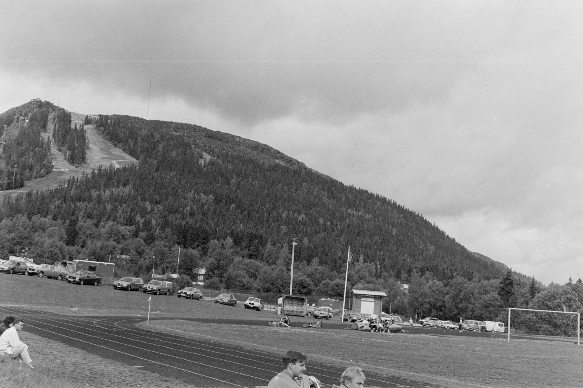 Parkeringsplats under Sydsamecupen i fotboll i Funäsdalen. Samefolket nr. 9 1992.