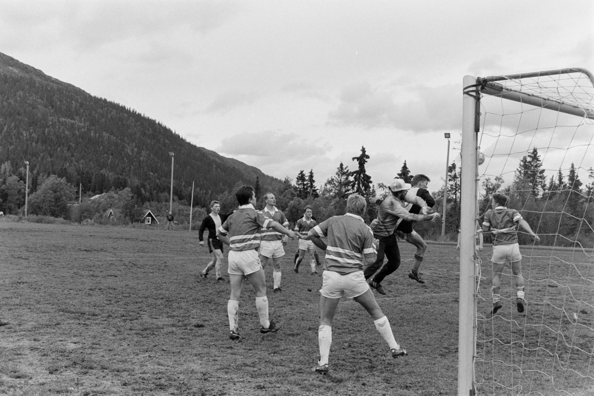Fotbollsmatch, herrar, på Sydsamecupen i Funäsdalen. Samefolket nr. 9 1992.