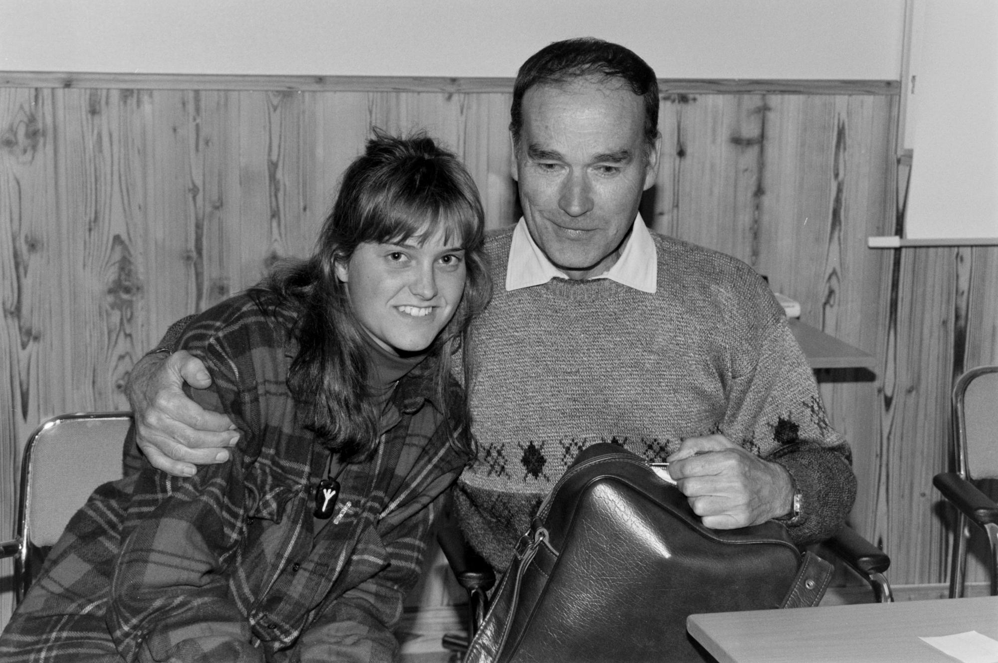 Vänskaplig samvaro efter rovfågelsdebatt. Ulrika Hävre, Jokkmokk, och ornitologen Gunnar Lind, Leksand. Samefolket nr. 11 1992.