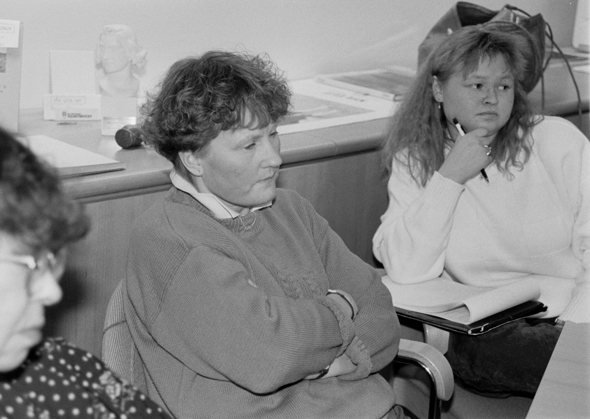 Tre kvinnor sitter fokuserade på något bortom kameran. Samefolket nr 3 1992.