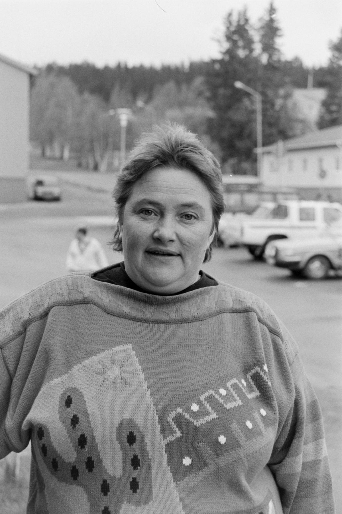 En kvinna deltar i SSR:s landsmöte. Bakom henne går en person på parkeringen.