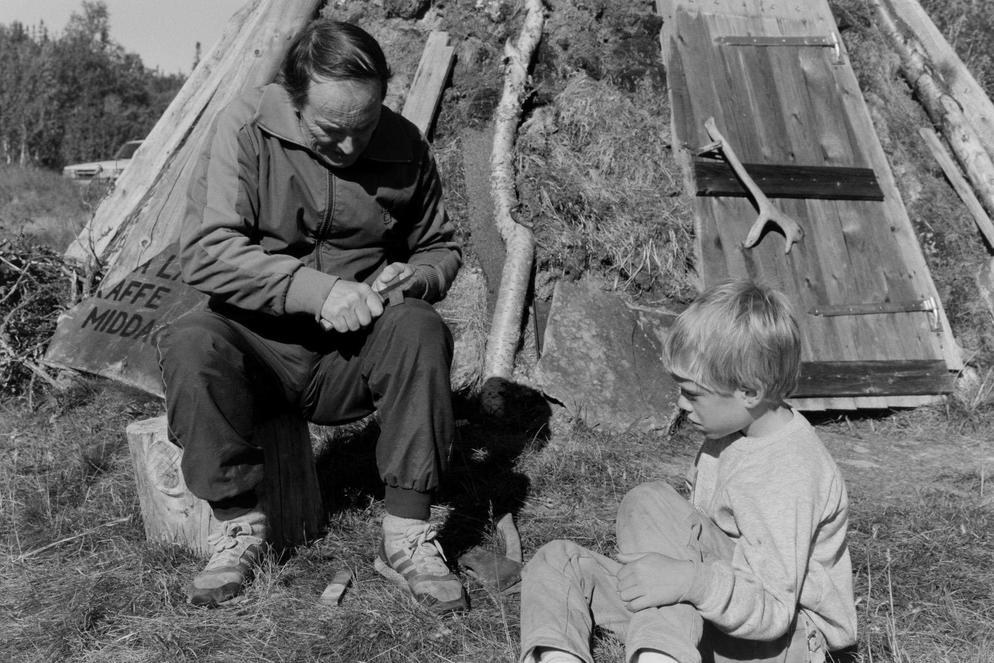 SameF:80:03675 :: torvkåta, diamantbryne, pojke, kniv, man