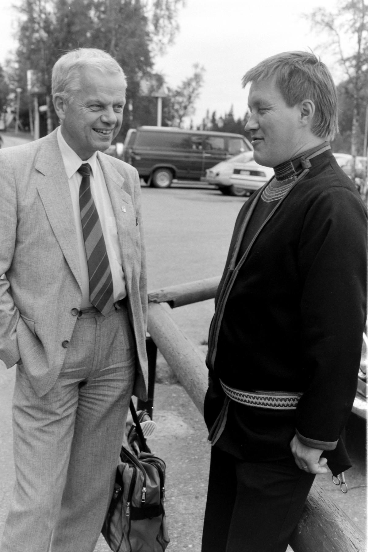 Tre män på SSR:s landsmöte i Vemdalsskalet. En bär sydsamisk kolt. Samefolket nr.9 1989.