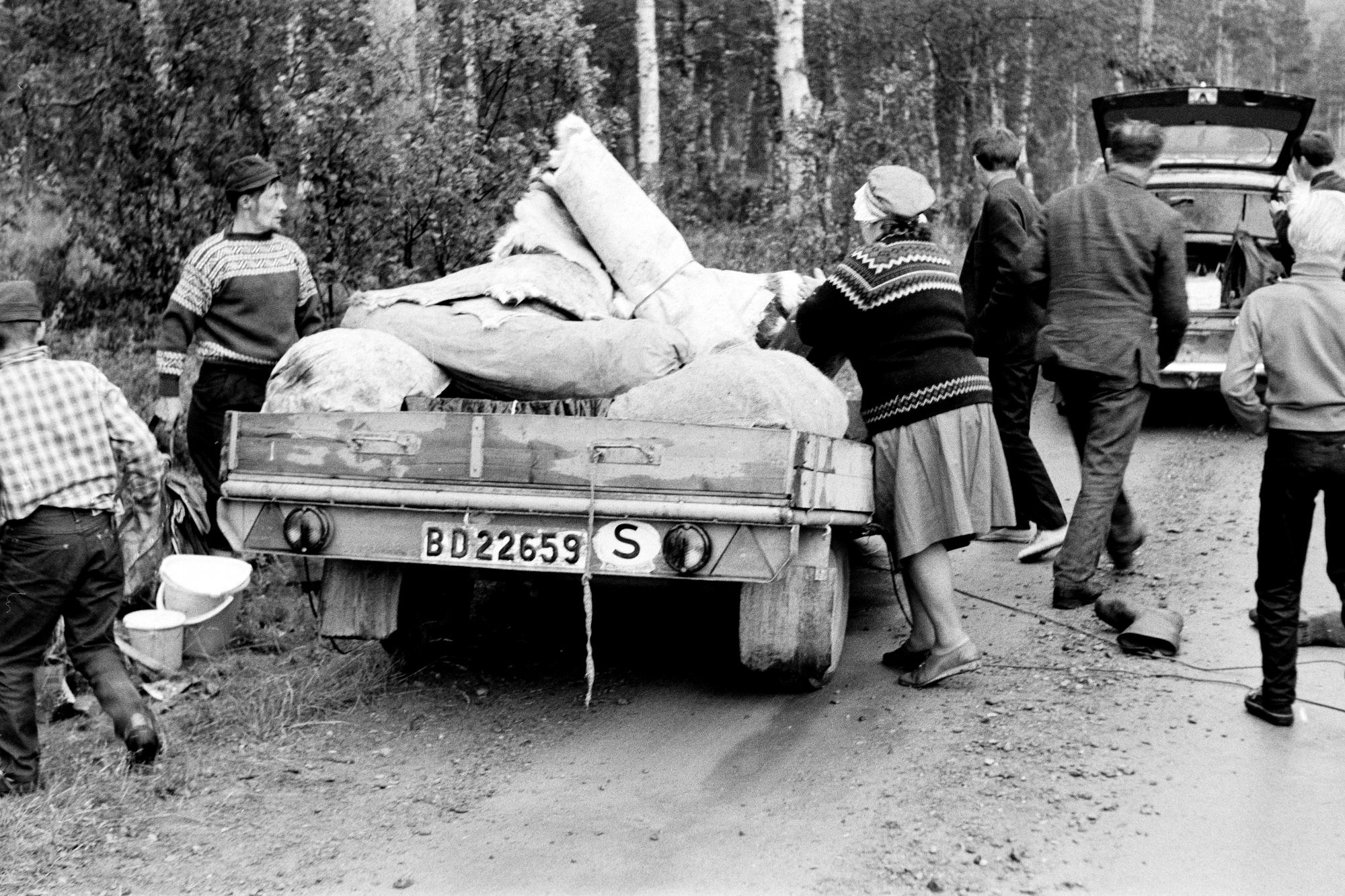 SameF:80:04807 :: utrustning, släpvagn, kvinna, män, packning