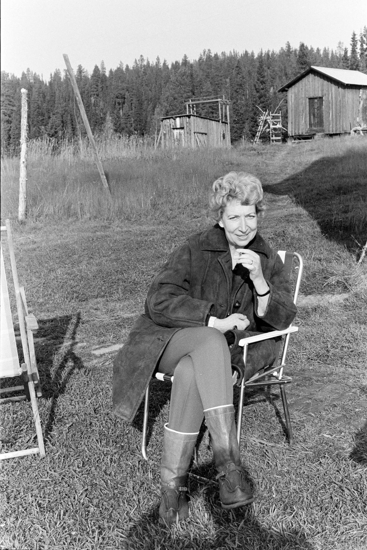 SameF:80:04859 :: bodar, gräsmatta, sittande, utemöbler, kvinna