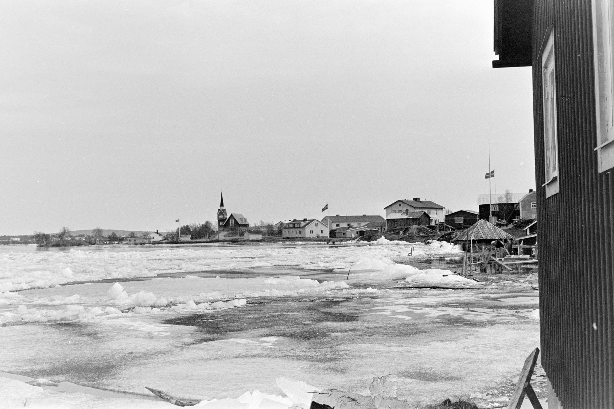 SameF:80:05065 :: byggnader, islossning, översvämning, kyrka, samhälle
