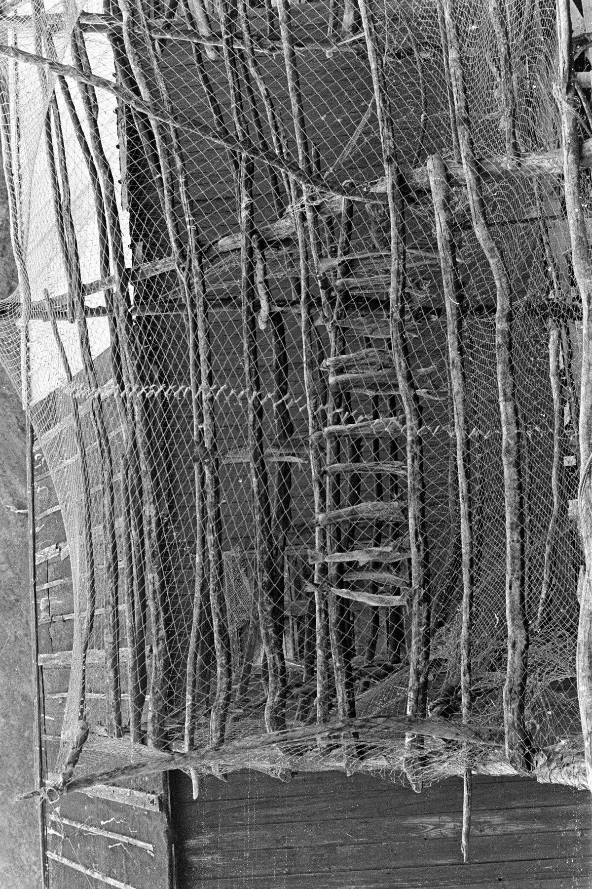 Torkst%C3%A4llning%20med%20n%C3%A4t%20som%20hindrar%20den%20torkade%20fisken%20fr%C3%A5n%20att%20bli%20mat%20f%C3%B6r%20f%C3%A5glar.%20Ett%20brant%20fj%C3%A4ll%20i%20bakgrunden.