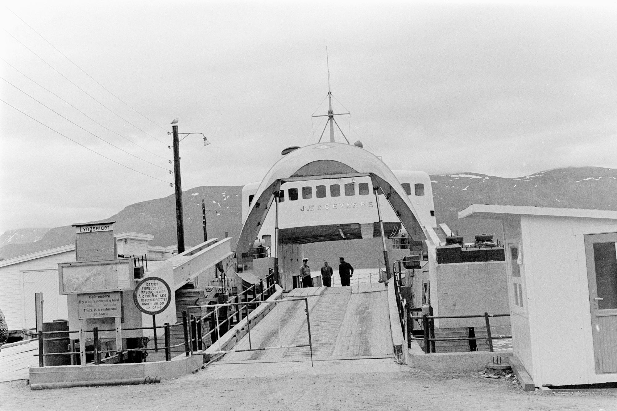 Bilfärja i fjord. "Färjan Jæggevarre", som Israel Ruong antecknat i sin reseskildring.