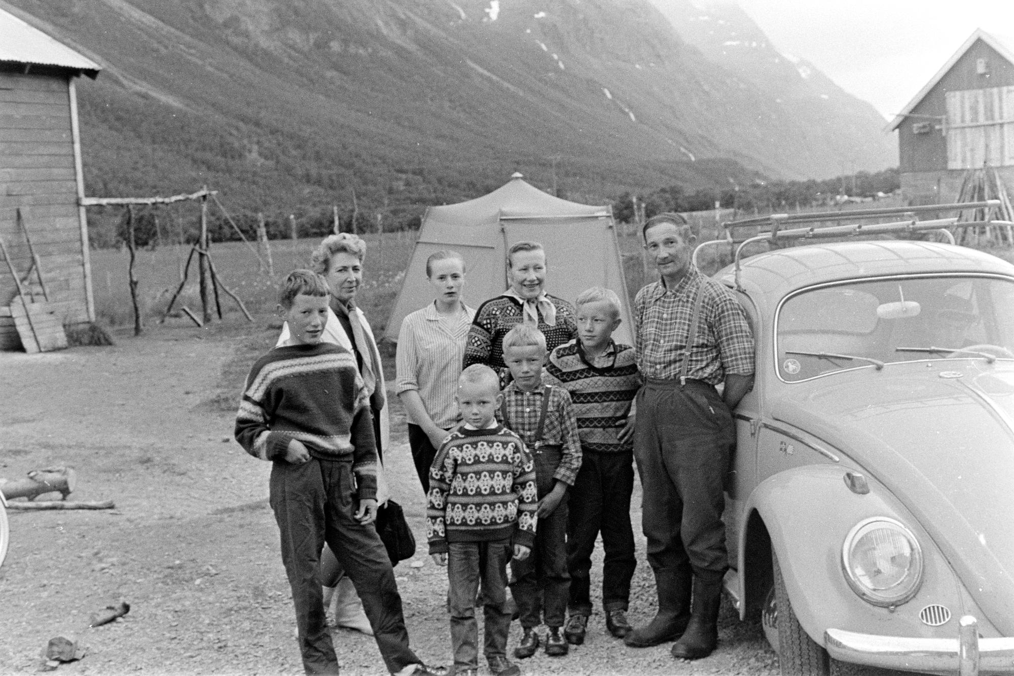 Familjen Blomli står uppställda vid en Folkvagn. Israel Ruongs fru står till vänster.