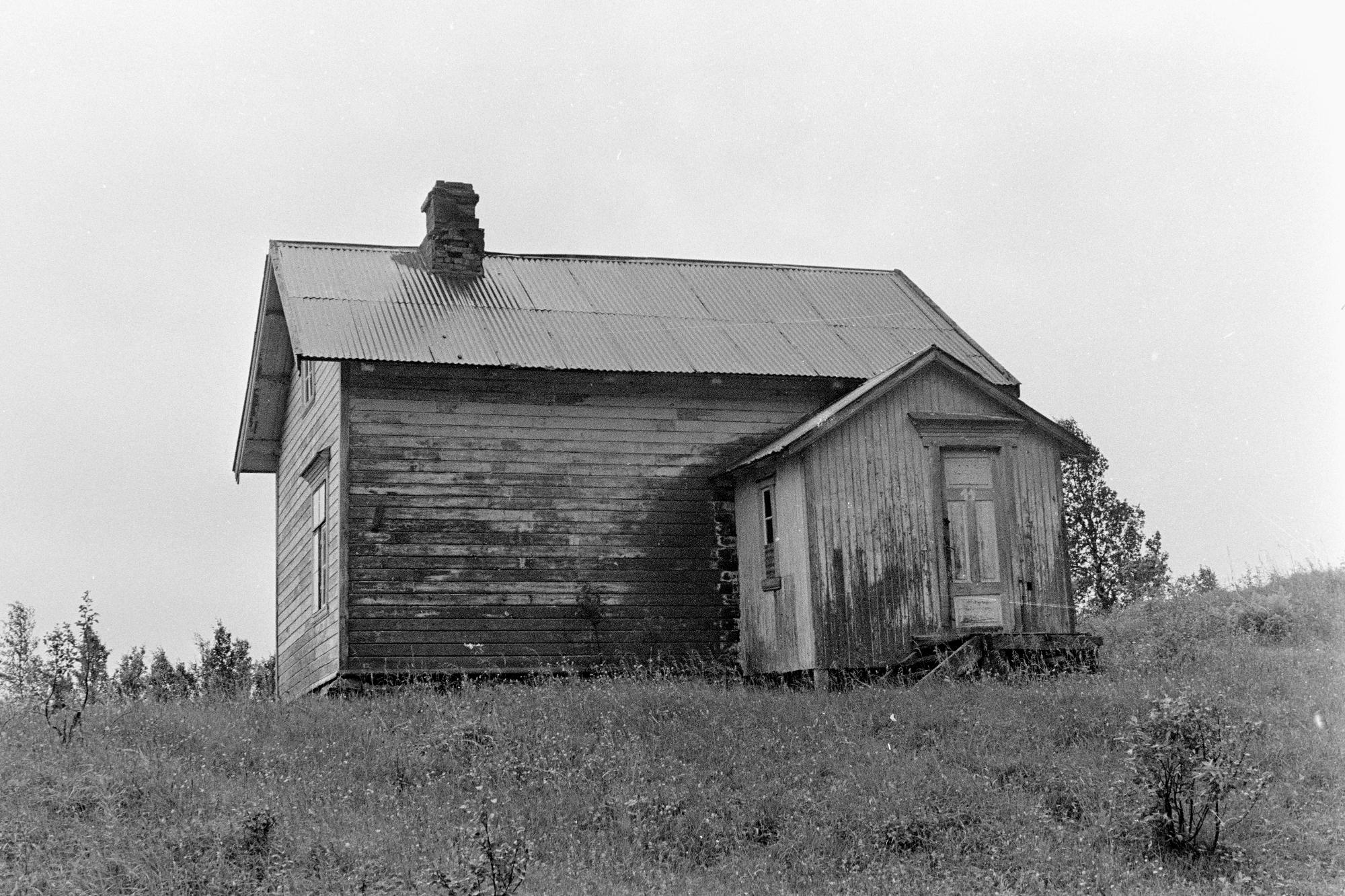 Hus med plåttak och tillbygd farstu.