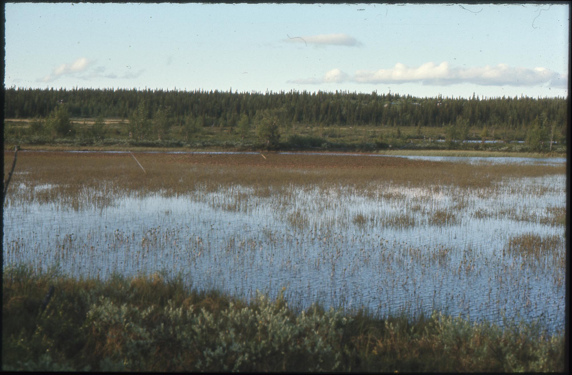 Blötmyr i förgrunden. Myrsjö.