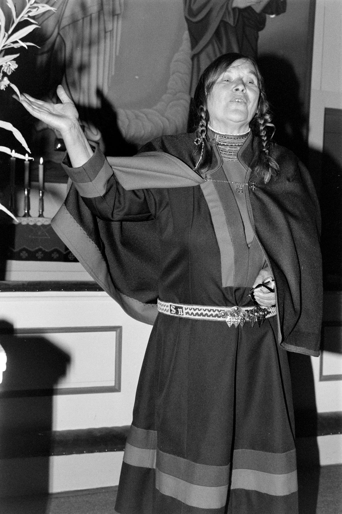 Berättare i sydsamisk kolt på invigningen av Same SM i Fatmokakke kyrka, Faepmie (saS). Samefolket nr. 9 1993.
