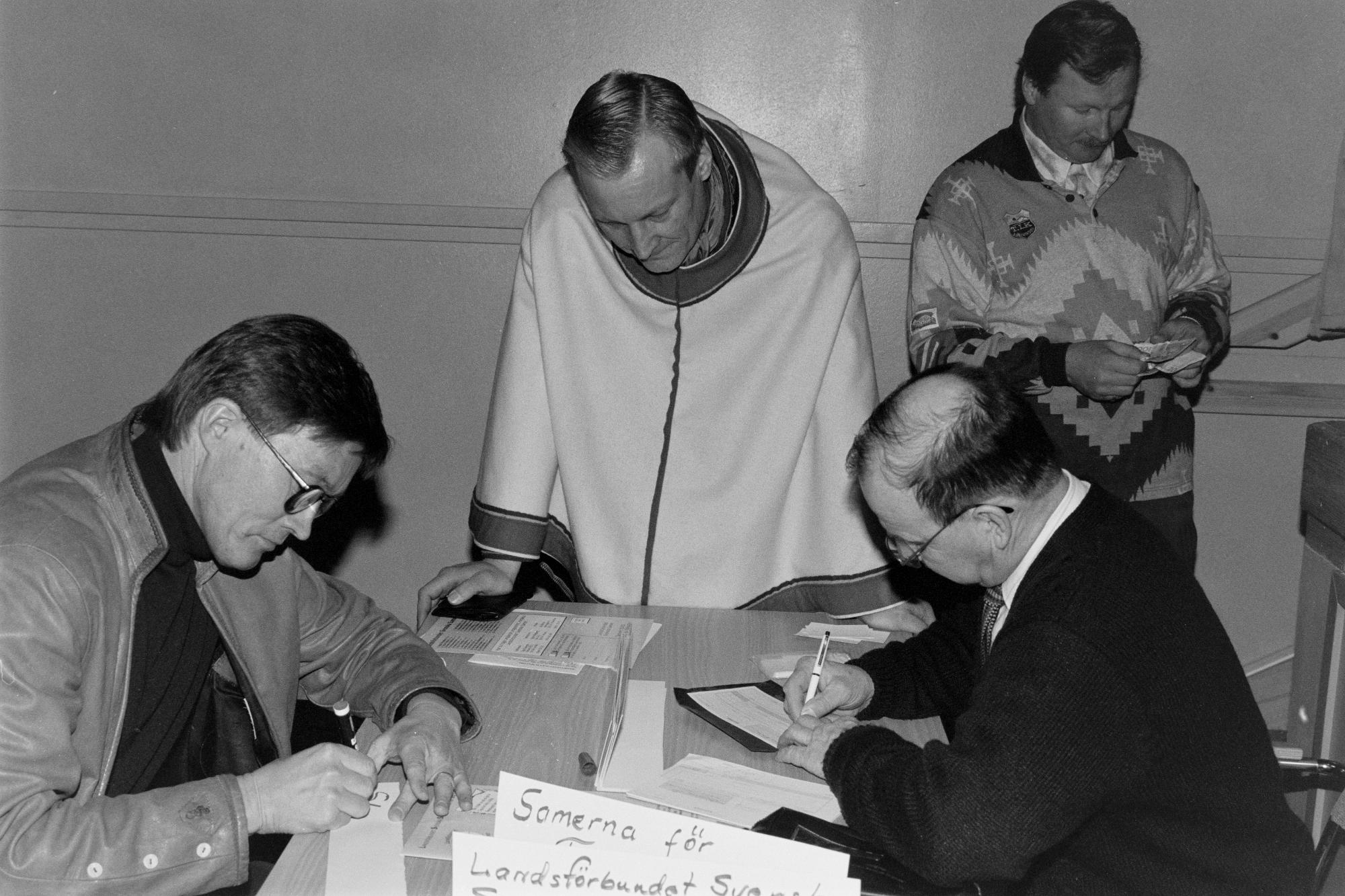 Manliga politiker förbereder sig för debatten inför Sametingsvalet. Samefolket nr. 4 1993.