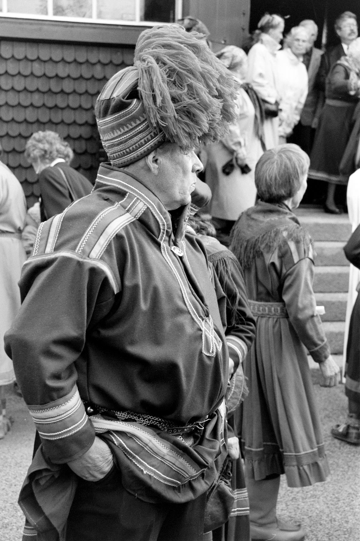 Man i nordsamisk kolt på Sametingets invigning den 25 augusti 1993.