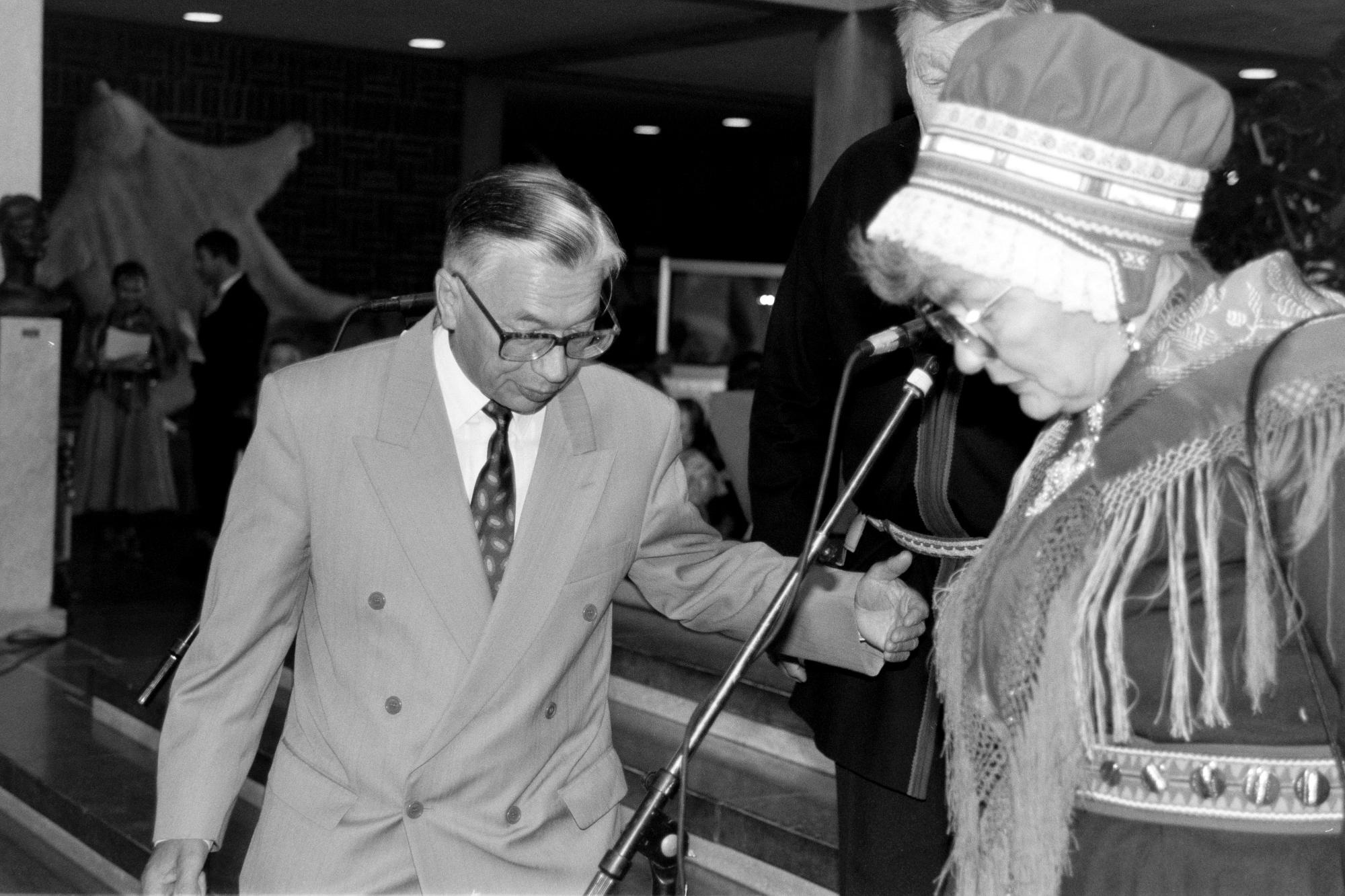 Man och kvinna på invigning av det nya Sametinget den 25 augusti 1993. Samefolket nr. 9 1993.
