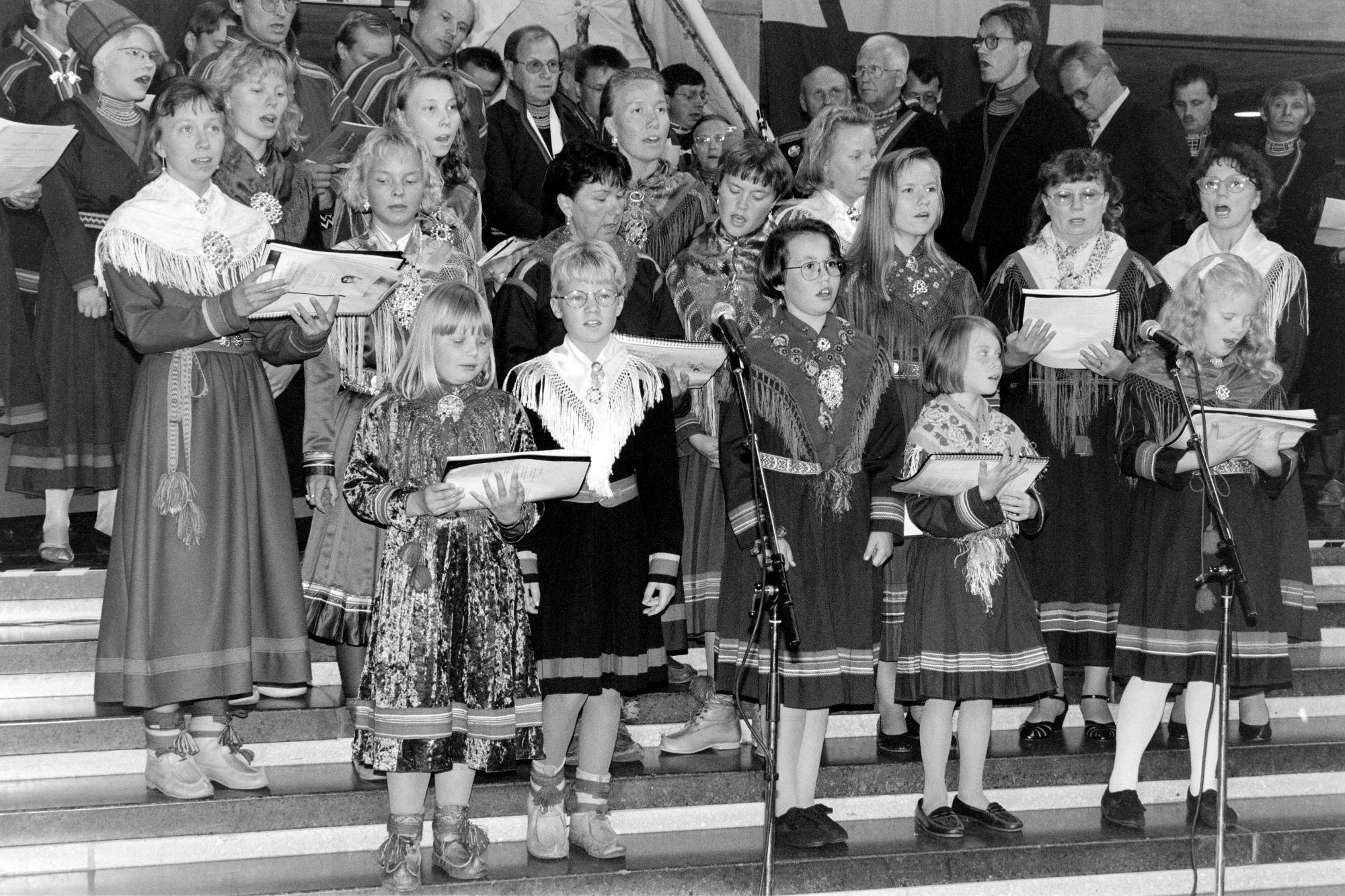 Ungdomar%20sjunger%20i%20k%C3%B6r%20p%C3%A5%20invigningen%20av%20Sametinget%20den%2025%20augusti%201993.