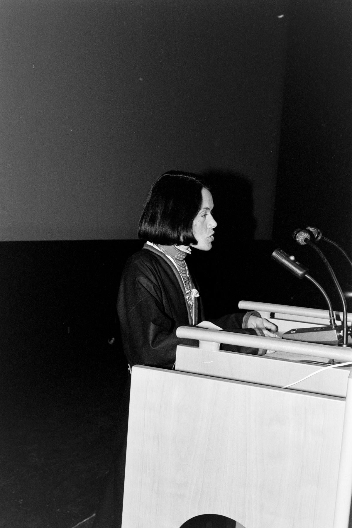 SameF:80:04491 :: talare, talarstol, podium, kvinna