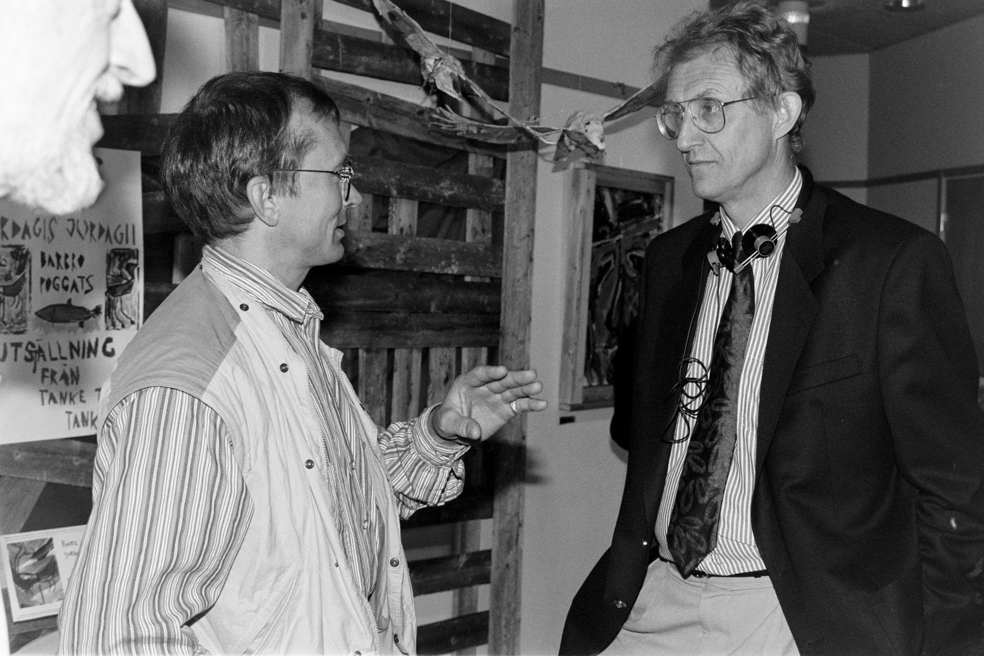 Man samtalar med annan man man (t.h) från Lantbruksverket på SSR:s, Svenska samernas riksförbunds, landsmöte i Kiruna. Samefolket nr. 6/7 1993.