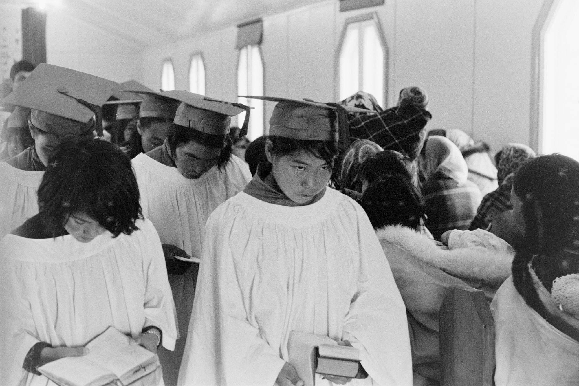 - Präst och kyrkobesökare i Kinngait/Cape Dorset som är ett inuitsamhälle beläget på Dorset Island nära Baffinöns sydspets i Qikiqtaaluk i det kanadensiska territoriet Nunavut.