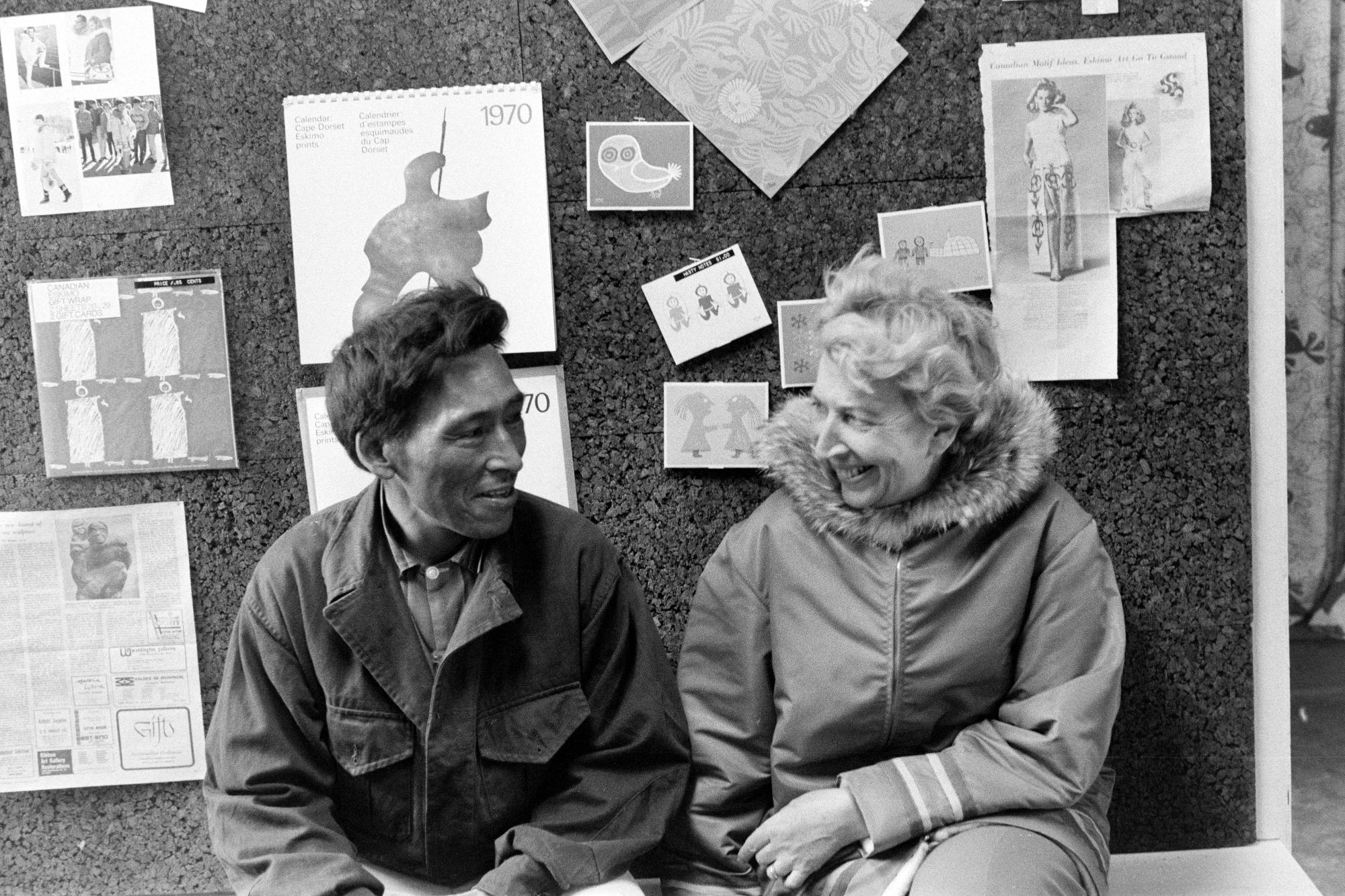 - Man och kvinna interagerar i byn Kinngait/Cape Dorset som är ett inuitsamhälle beläget på Dorset Island nära Baffinöns sydspets i Qikiqtaaluk i det kanadensiska territoriet Nunavut.