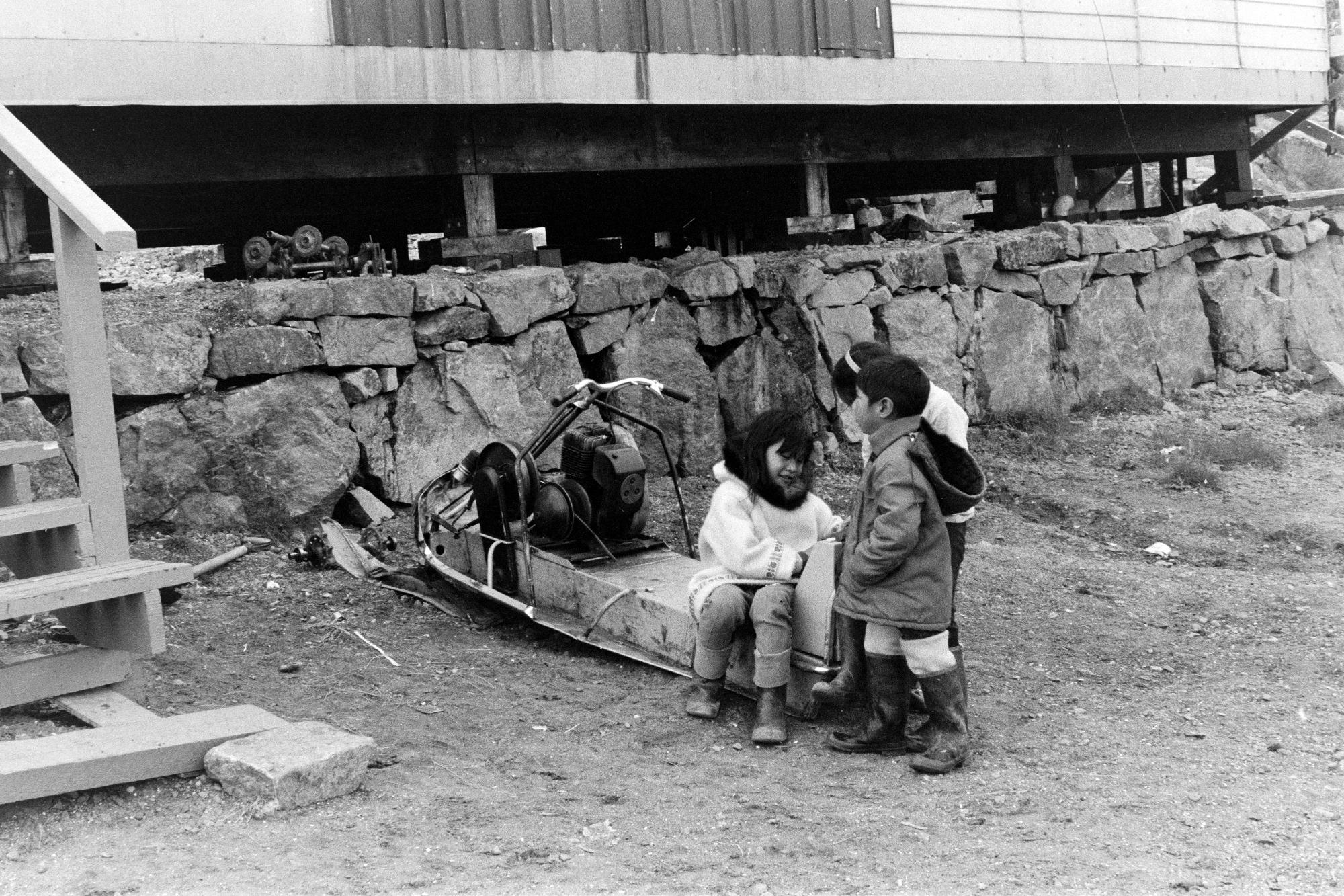 - Barn leker vid skotervrak i byn Kinngait/Cape Dorset som är ett inuitsamhälle beläget på Dorset Island nära Baffinöns sydspets i Qikiqtaaluk i det kanadensiska territoriet Nunavut.