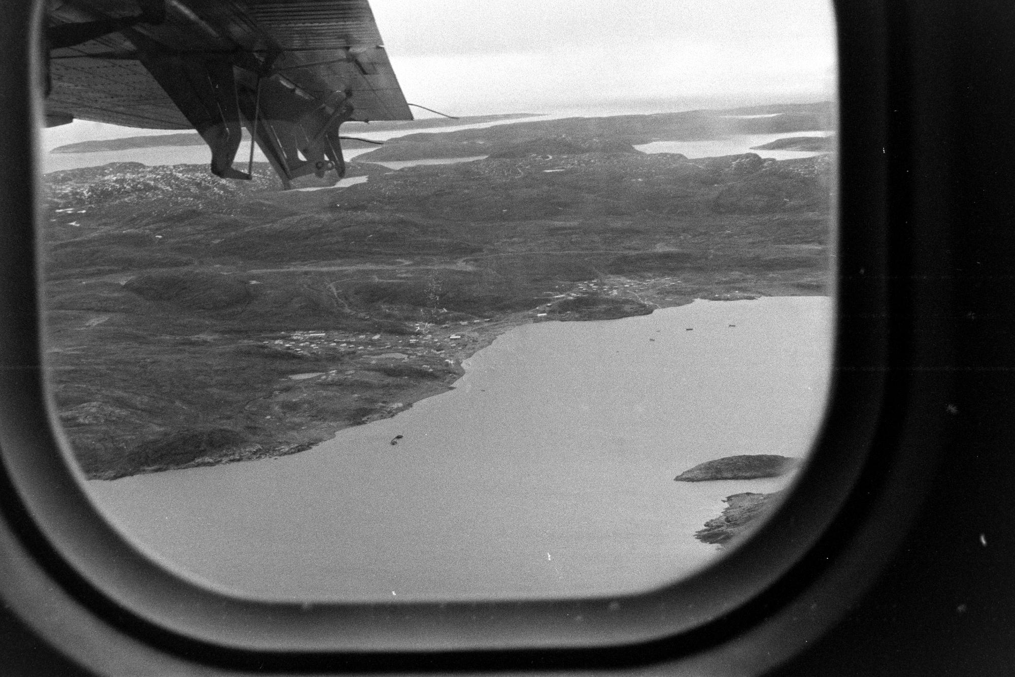 - Landskap från flygplan vid Frobisher Bay som är en by i en vik i Kanada. Byn ligger i territoriet Nunavut, i den östra delen av landet, 2 000 km norr om huvudstaden Ottawa.