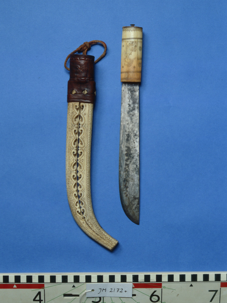 Jm:002172 :: huggare, redskap, kniv med slida, storkniv