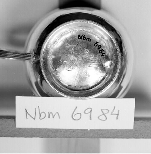 - supkopp, halvklotformad med fot och handtag. Invändigt, samt dryckeskanten på utsidan förgylld. Floristisk dekor ("vågor"), svisselerad, på utsidan. Handtaget refflat. Stämplar: tre kronor-Luleå stadsstämpel-Luleå stadsstämpel (2ggr)-0:F-3. Bomärke: se skiss. Inristat på utsidan: LAL.