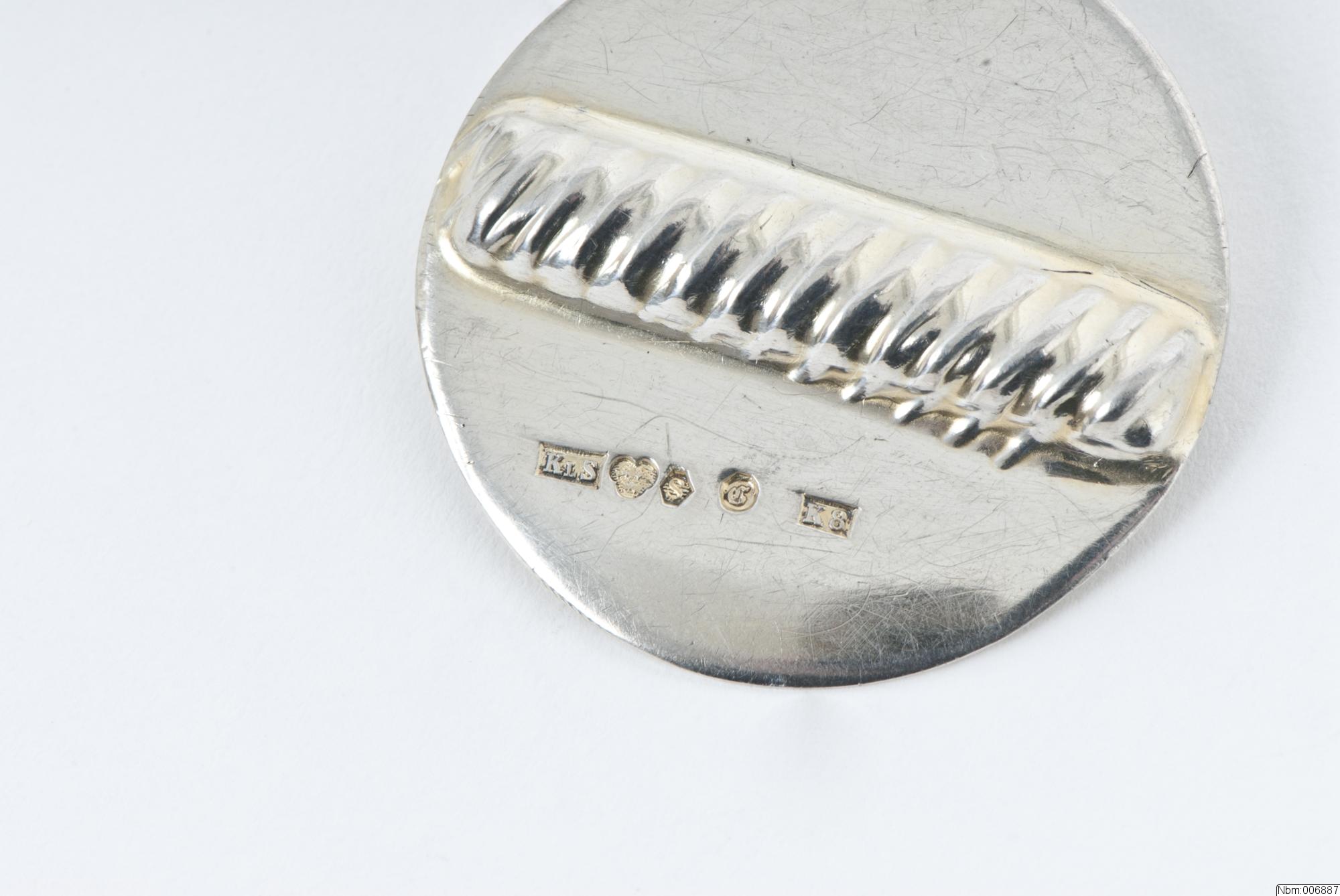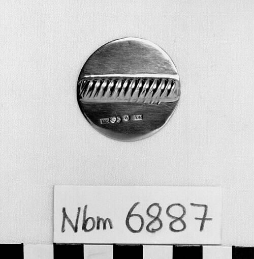 Rund platt form. Larvornament som dekor. Stämplar: KLS-tre kronor-S-Gällivare stadsstämpel-K8.