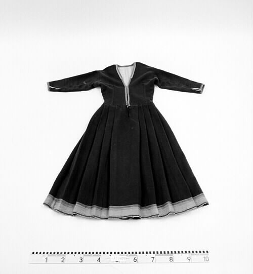 Kolttyget är halvylle, bomull i varp och svart ullgarn som inslagstråd. Det är vävt i dubbelvävd fyrskaftad korskypert med inslagseffekt (kolten är blekt). Den är sydd i klänningsmodell, med snävt liv, avskuren midja och 20 st. lagda veck i kjolen. Denna koltmodell var vanlig i det område omkr. sekelskiftet. Livet har 3 insydda veck. Det 3:e insytt tillsammans med fodret. Livet är fodrat med vitt bomullslärft och ärmarna är fodrade med vitt fiskbensmönstrat bomullstyg. Ryggen är hel med en handsöm, sytt tillsammans med fodret. Fodret är fastsytt i kolten med svart tråd.