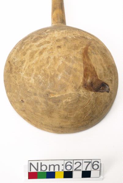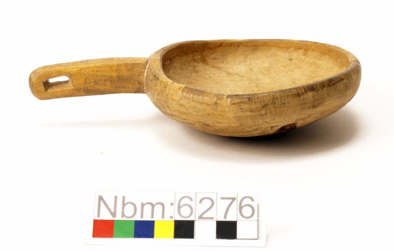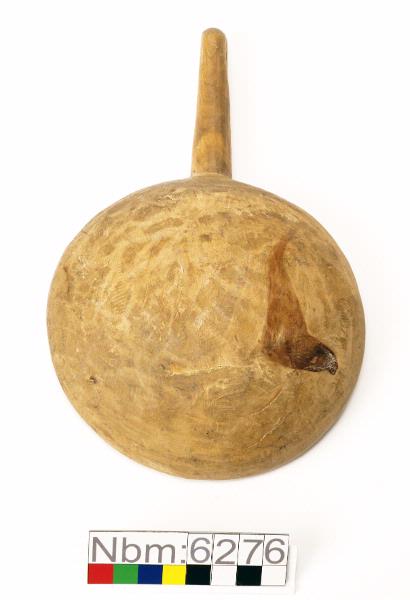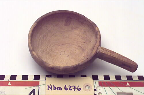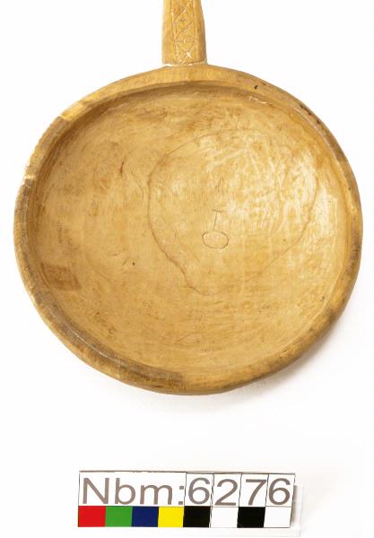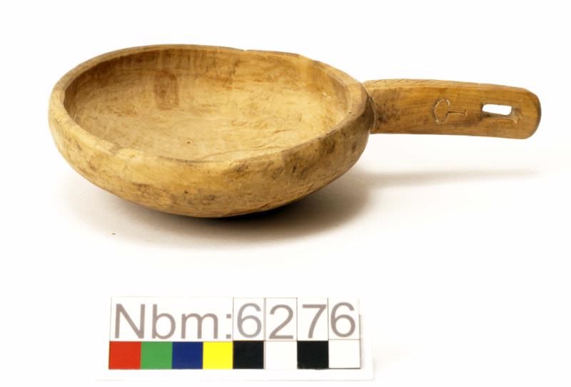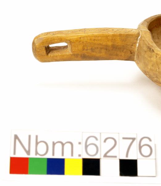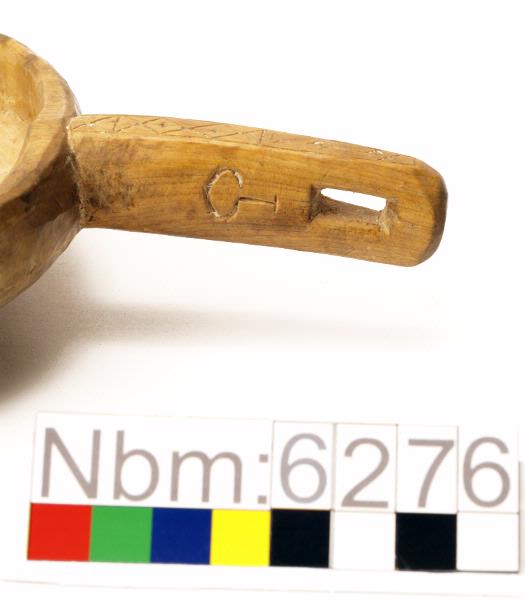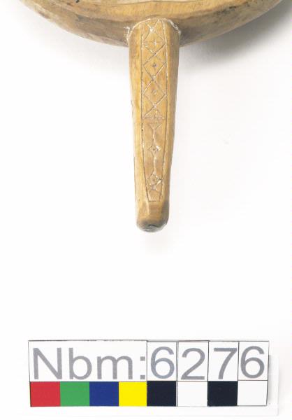 Rund form, relativt låg med skaft. Dekor på skaftet i form av geometriska romber.