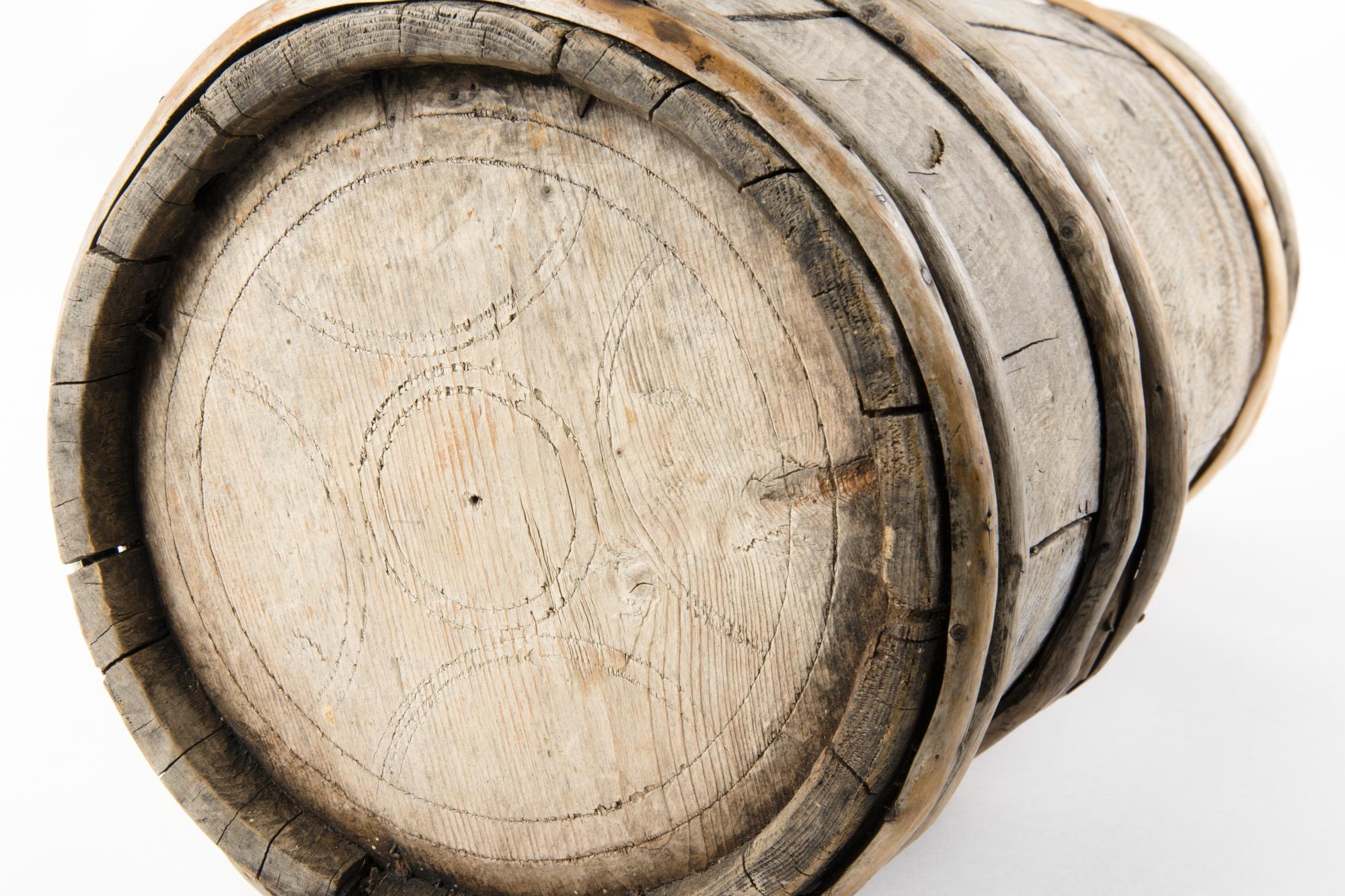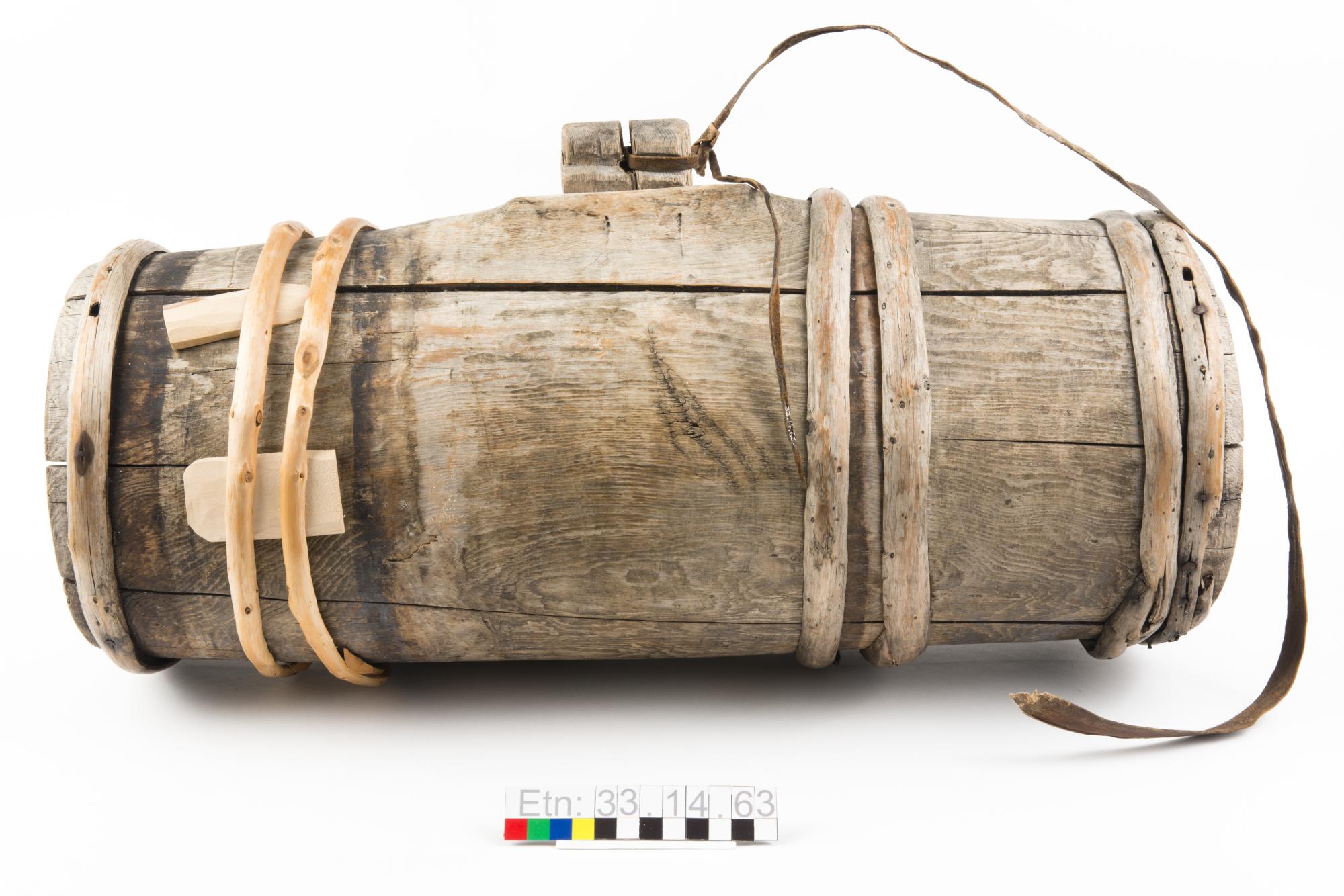 - För surmjölk eller juopmo. Cylinderformig, urholkad ur en stock; bottnarna insatta. På grund av sprickning försedd med 4 par vidjeband. Tapphål på mitten; tappen fasthållen med en läderrem, som knutits runt om kaggen.
