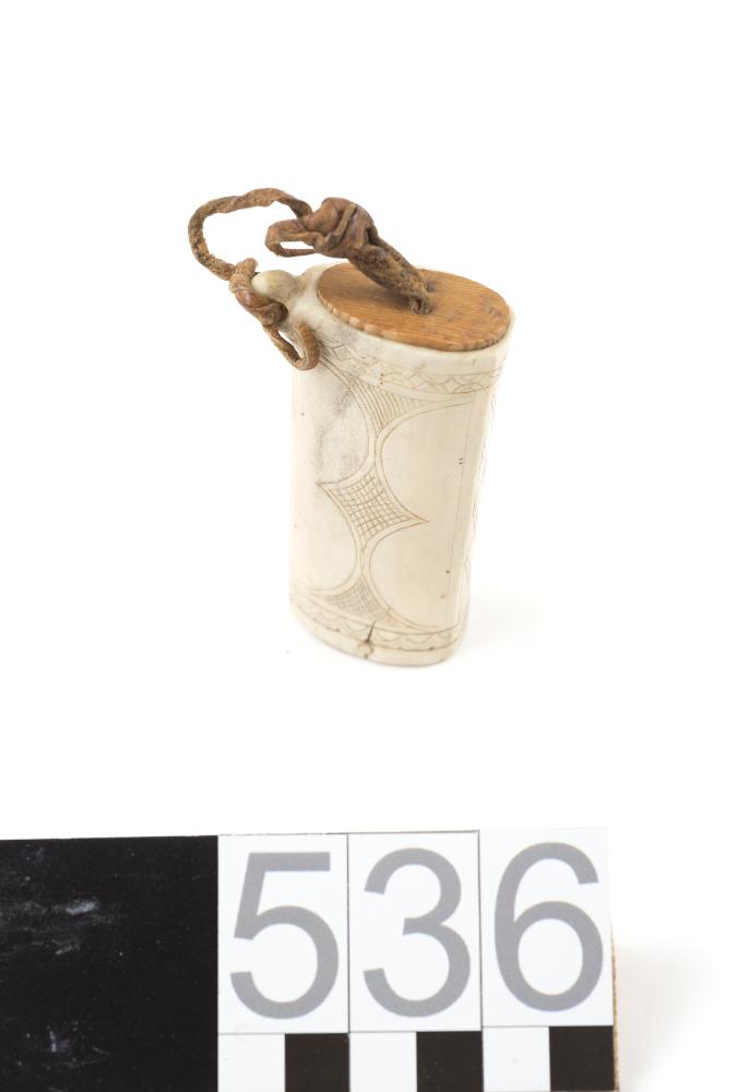 Tändsticksdosa av horn med utsirade ornament.