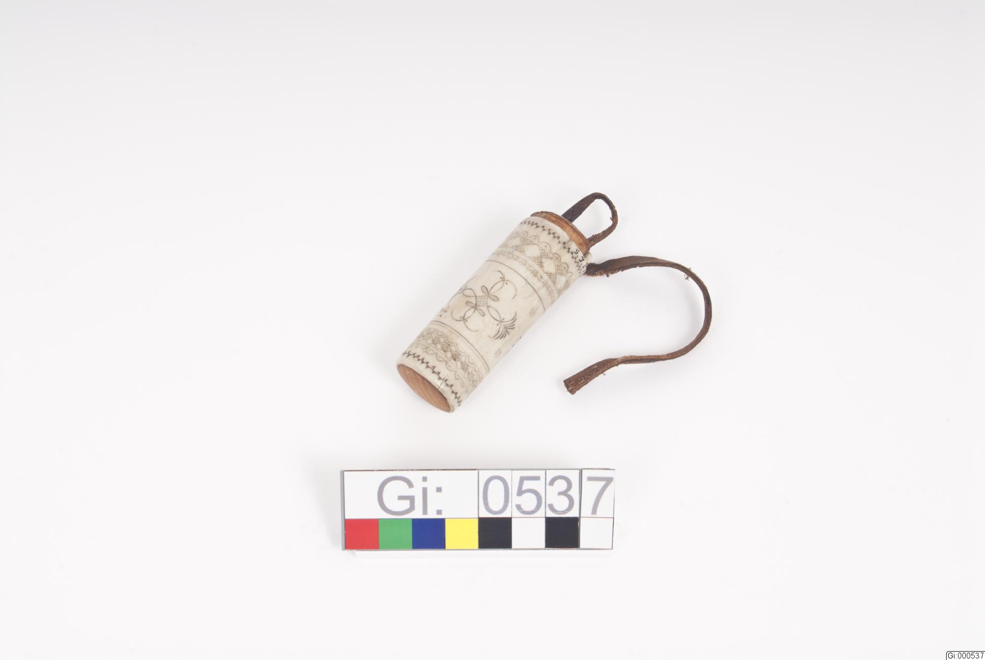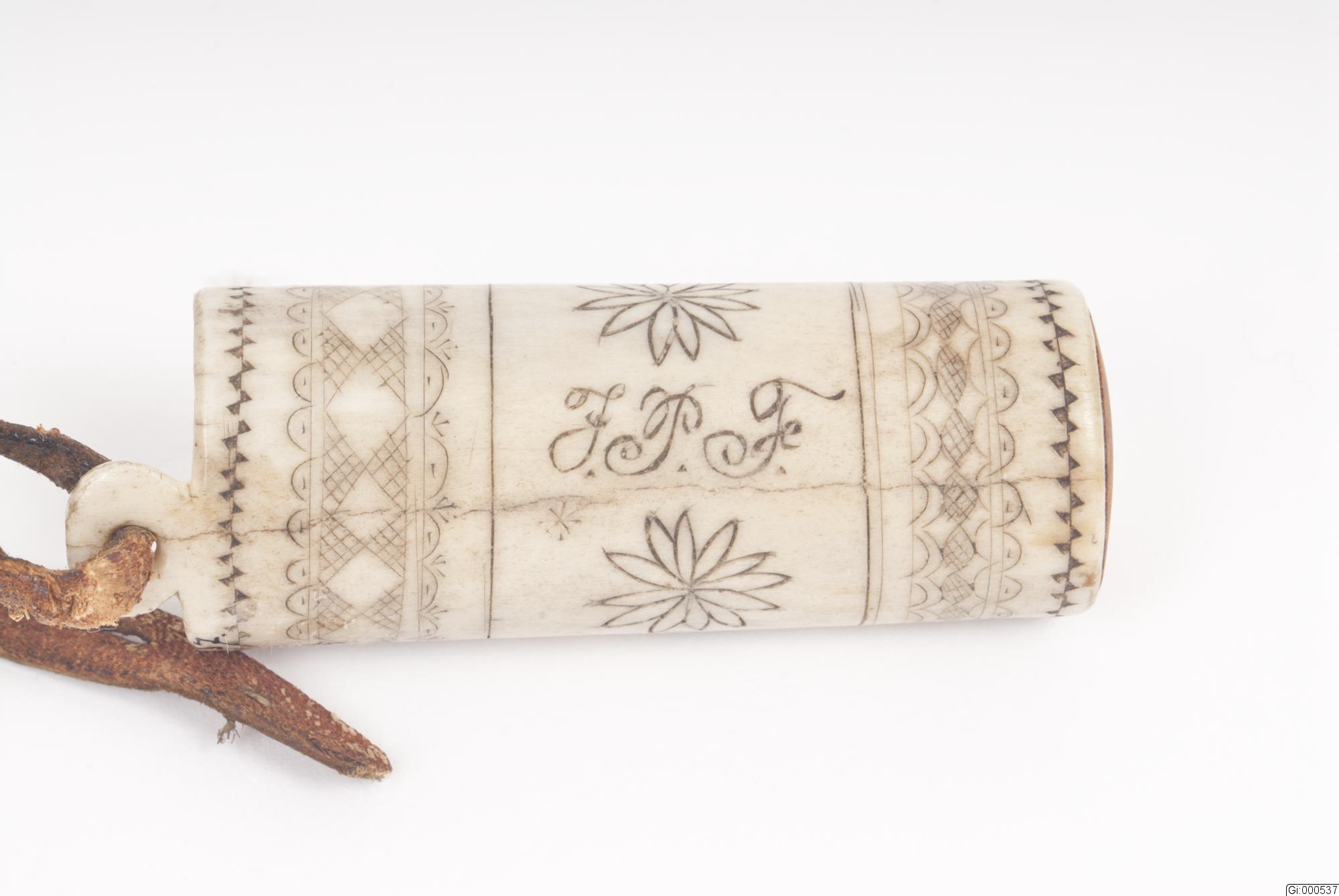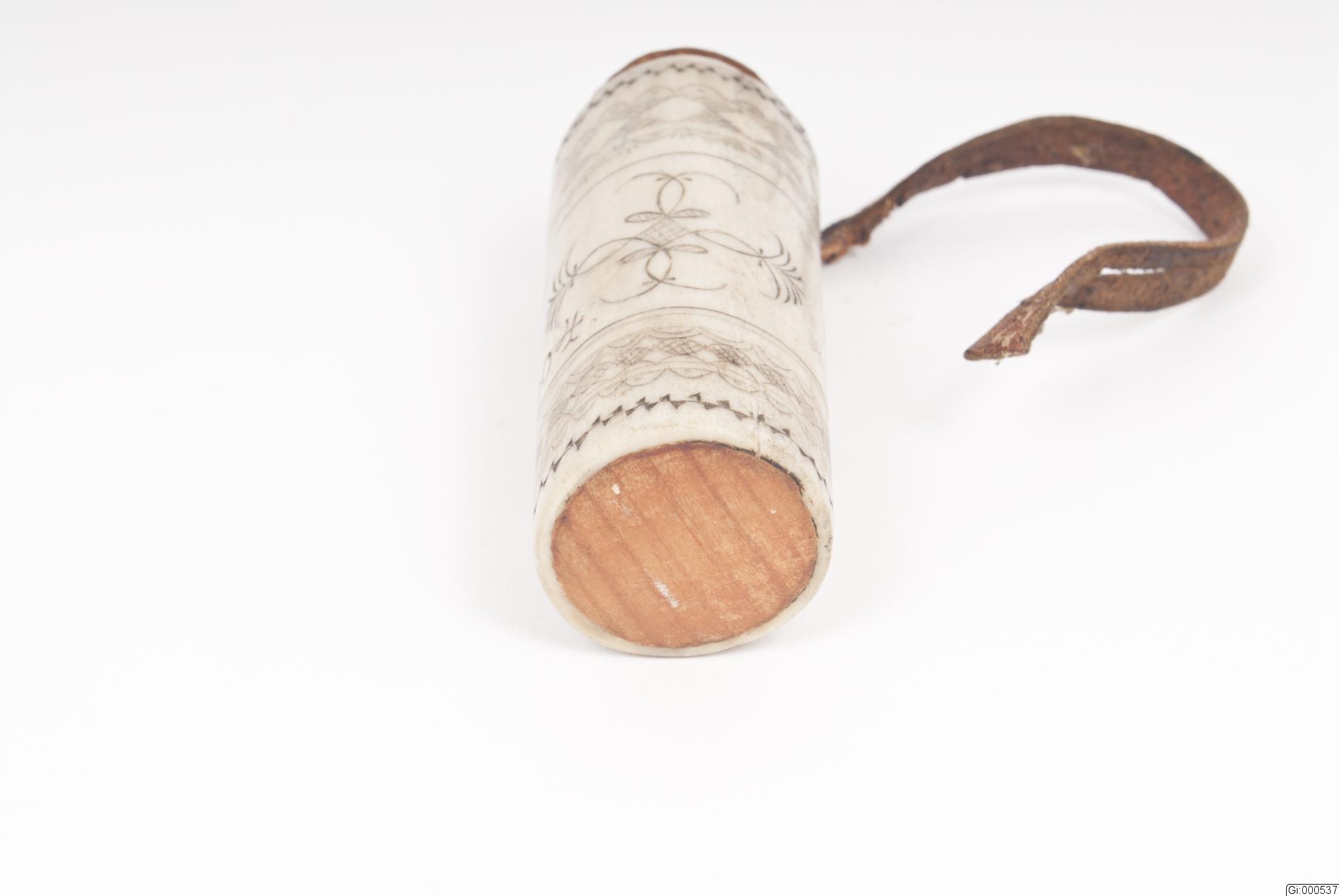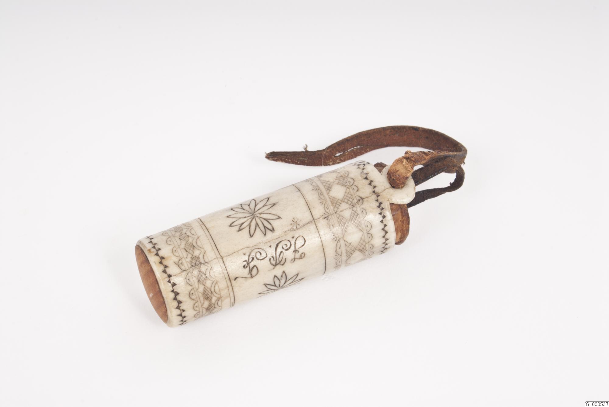 Tändsticksdosa av horn med utsirade ornament.
