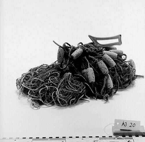 - Övertelnen består av korkbitar och nederdelen av blyteln. På plastnätstickan är initialerna "AST" inristade. Grönfärgad. Badjosa leat goarkat ja vuollosen ladjubaddi. Plasetsákkis lea AKT ceahkkun. Ruonán bainnun.