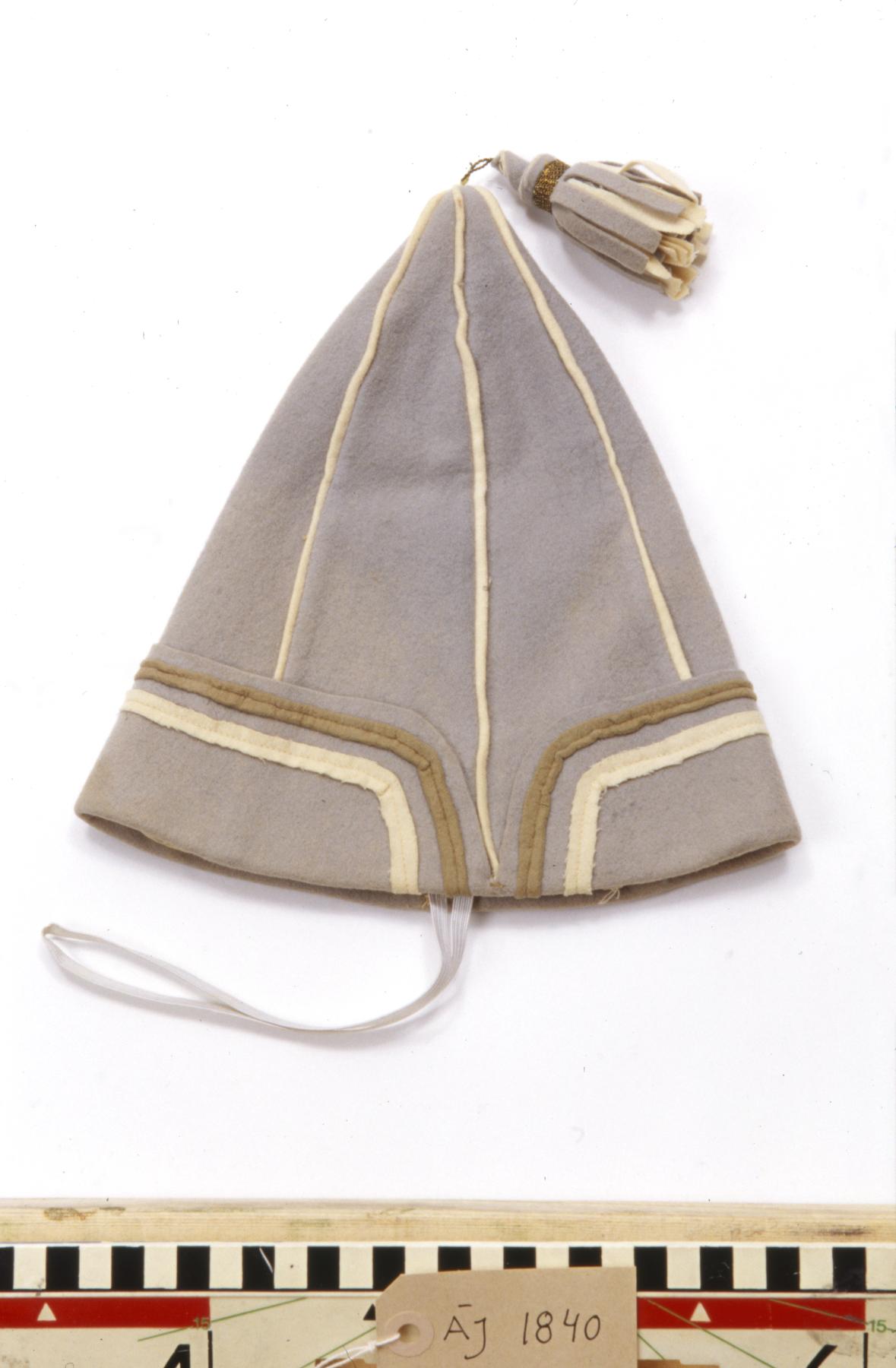 AJ:001840 :: sekelskifteskolt, kolt, barmkläde, bälte, mössa