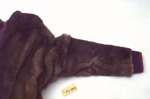 Päls av kalvskinn, sydd med sentråd i kastsöm.