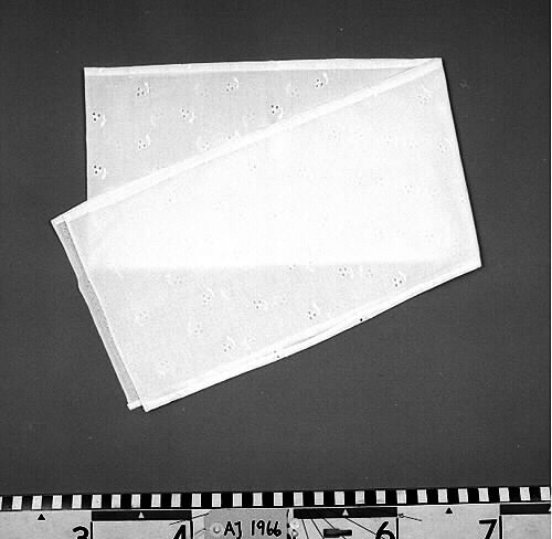 Halsduk, vit, i polyester/bomullsmaterial. Fållad runt om.