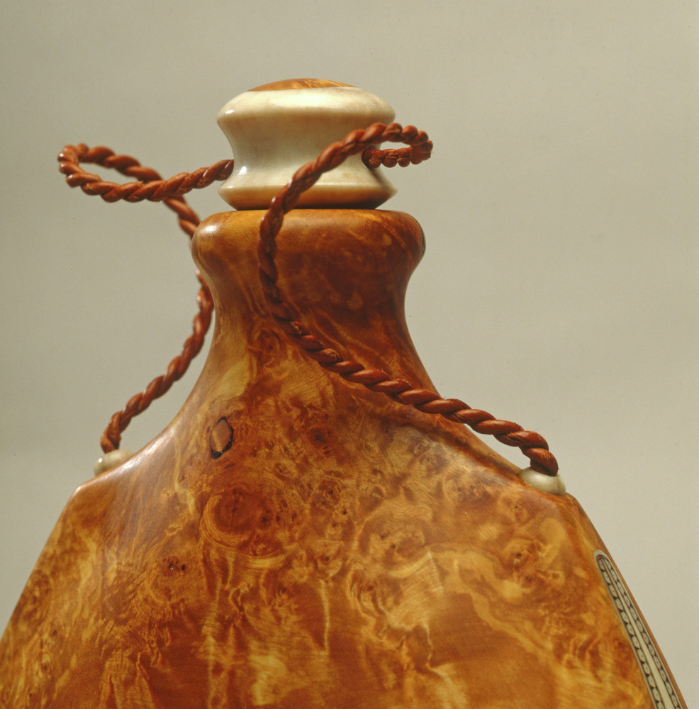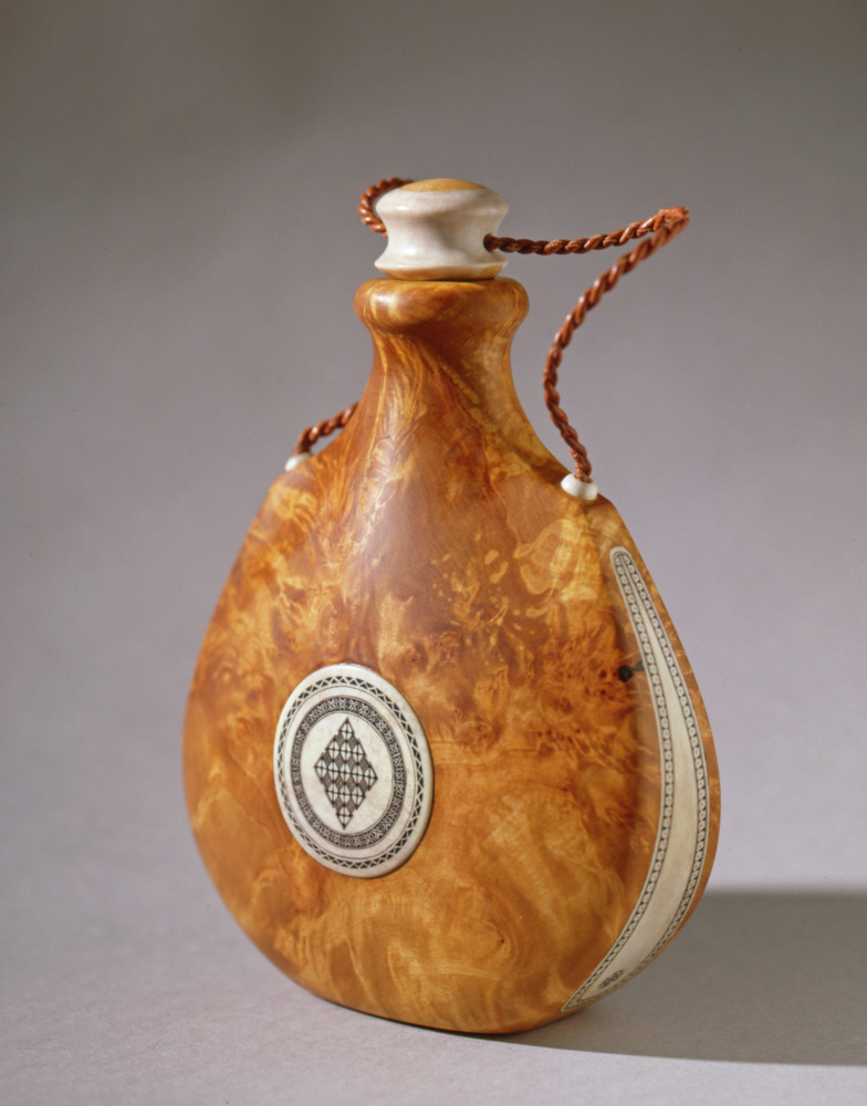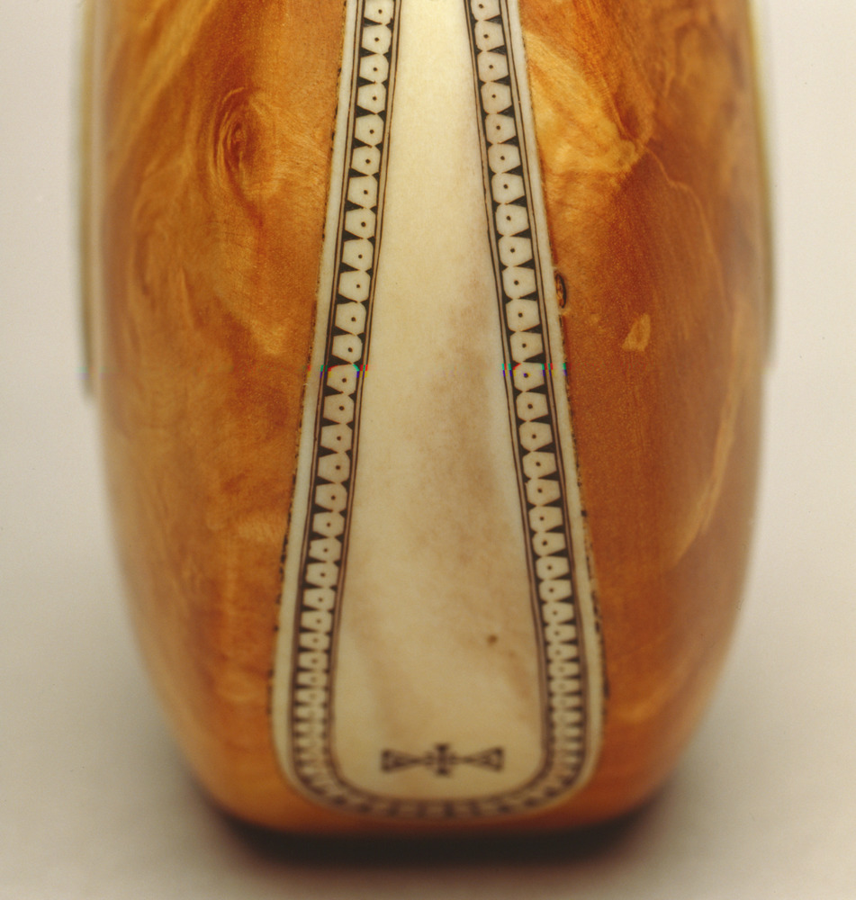 - Saltflaska i masurbjörk. På var sida är det en rund, graverad hornplatta i mitten. Det är även horninfällningar i sidorna som är graverade. Botten på flaskan är något platt och där är AA ingraverat. Upptill på sidorna är det fäst en skinnsnodd som löper genom korken, på så sätt kan den endast öppnas men ej tas bort. Korken består av trä samt horn. På insidan av flaskhalsen är det fäst skinn med avigsidan ut för att korken bättre skall fästa.