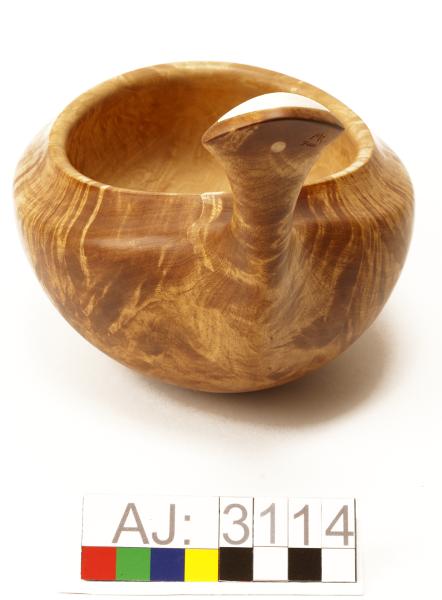Ett konsthantverk att visa upp i hemmet eller använda som skål. Ursprunget är det samiska mjölkningskärlet av trä, som förr användes vid mjölkning av renen. Formen med den rundade kanten skulle hindra mjölken från att skvalpa ur vid mjölkningen.