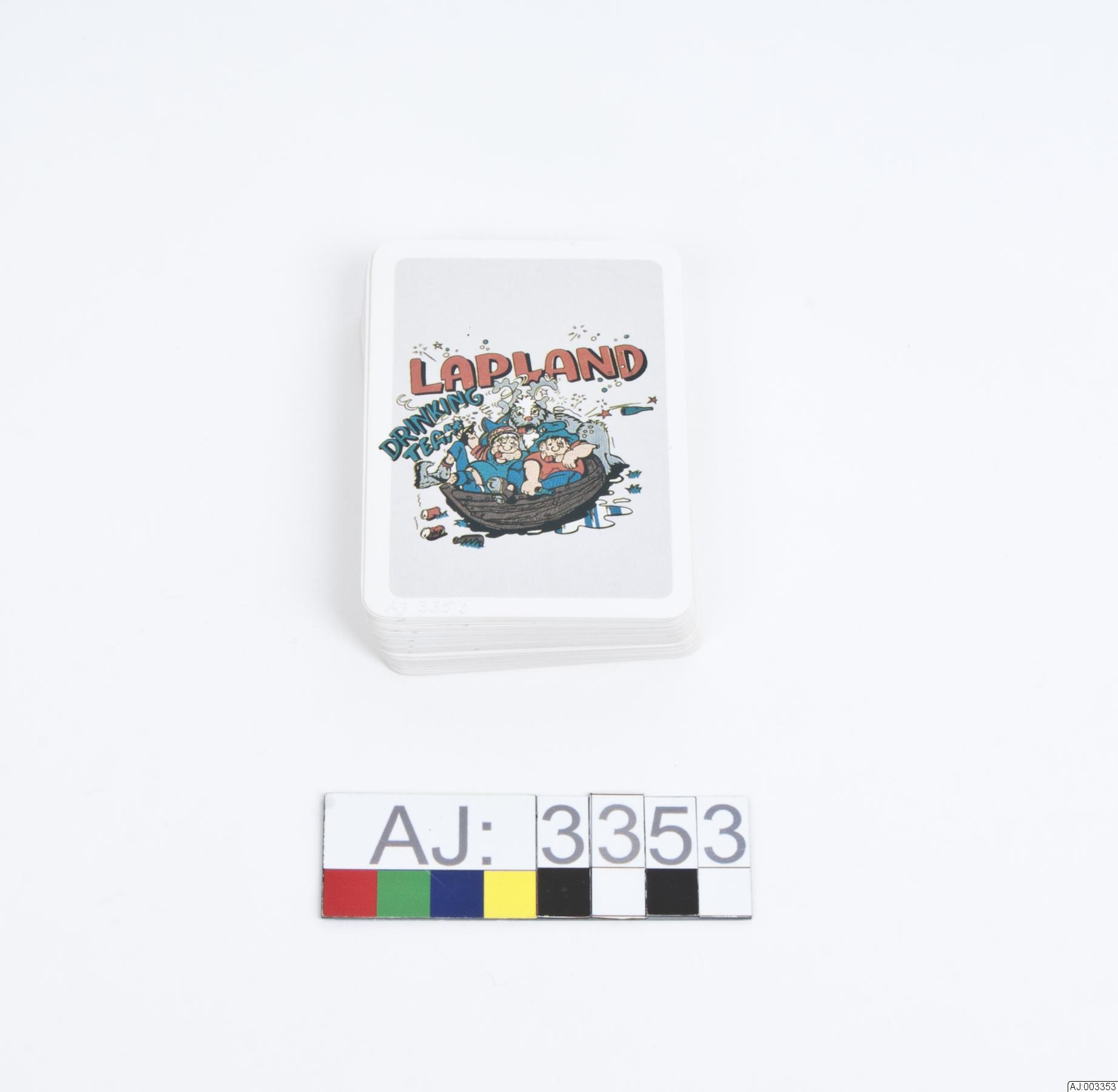 Kortlek med 54 kort: spader, ruter, klöver och hjärter samt två jokerkort. I "mittenspadern" på spaderess-kortet finns texten "Lapin Pajala" samt ett renhuvud. De fyra knektkorten visar en berusas guldvaskare i slokhatt. De fyra drottningkorten visar en uppenbarligen arg samisk kvinna med en brödkavel i handen, iklädd en mössa som påminner om Karasjokk-mössan. De fyra kungakorten visar en samisk man iklädd kolt och "fyra vindars"-mössa, med en ölflaska i handen. Två jokerkort finns i leken. Jokern är en samisk nåjd i trance, som sitter och slår på en spåtrumma. Han är klädd i kolt och "fyra vindars"-mössa. Baksidan av korten har texten "LAPPLAND DRINKING TEAM" och en teckning föreställande två berusade män med varsin flaska i handen, en iklädd fyra vindars"-mössa och en slokhatt, samt en ren. Männen befinner sig i en roddbåt, som står på land. Nedanför roddbåten ligger två alumliniumburkar och en flaska, en flaska flyger i luften som den just kastats.