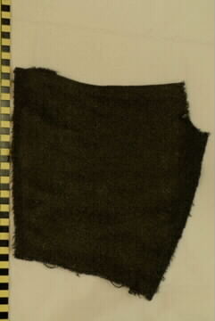 En avlång bit mörkgrå vadmal, en söm längst ena kanten.
